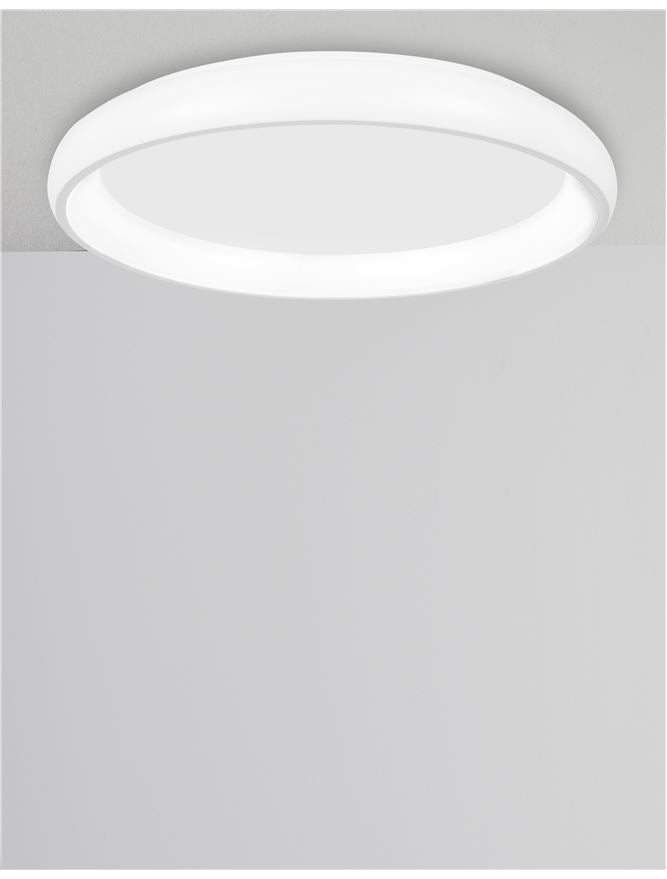 Circular Ring Flush ceiling light finished in white aluminium with an acrylic inner ring diffused light source.