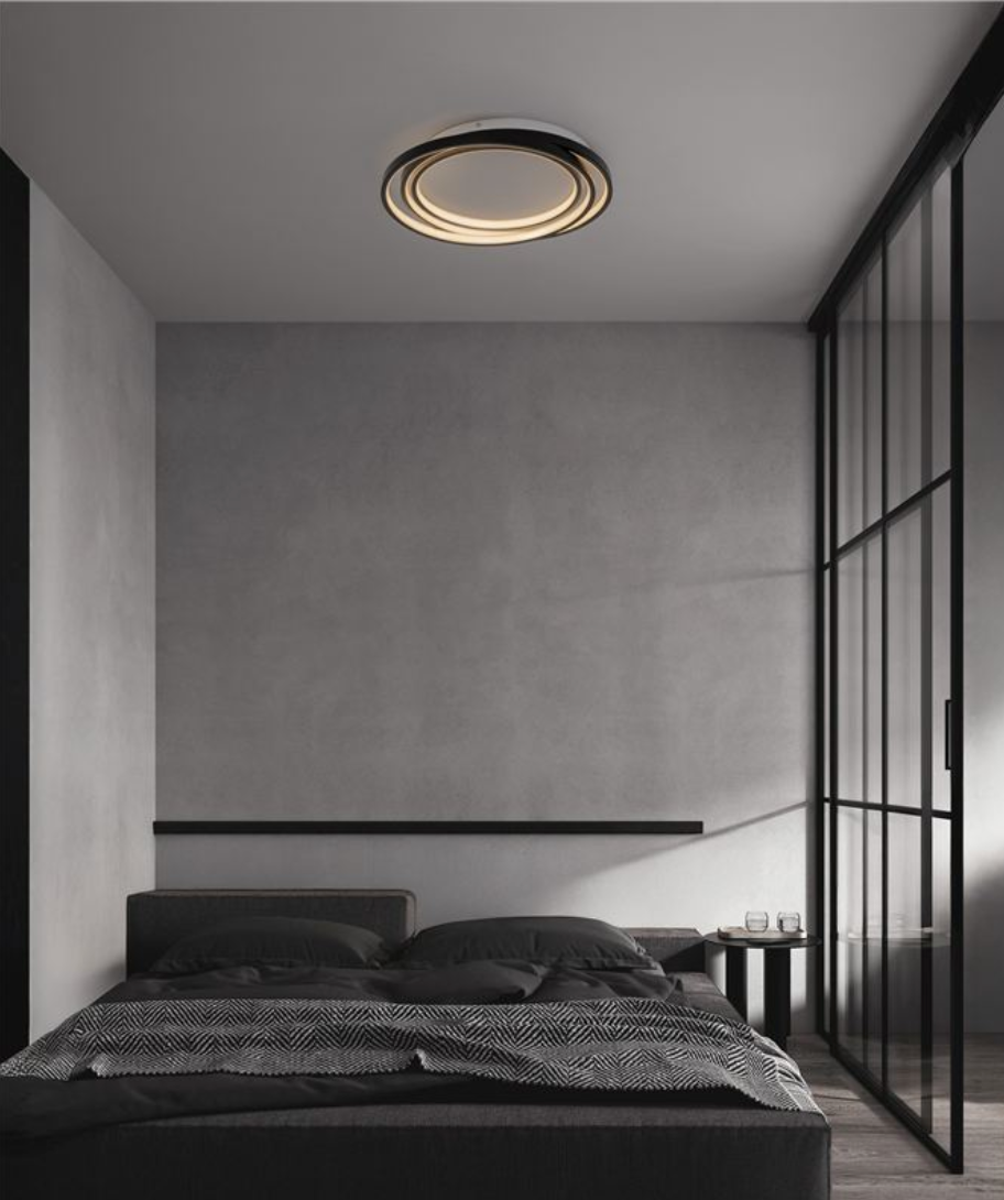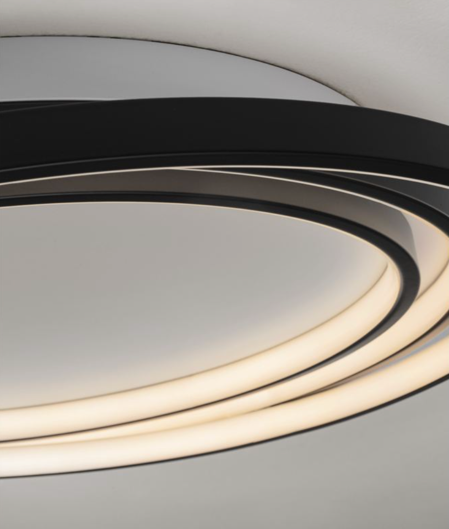NL Arbir Matt Black Aluminium & Acrylic 3 Ring Semi Flush Ceiling Light Large - ID 13796.