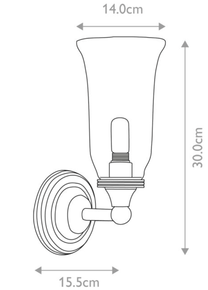 From our Plumpton bathroom range, this single wall light features a polished chrome finish and glass shade is a classic addition to any bathroom.