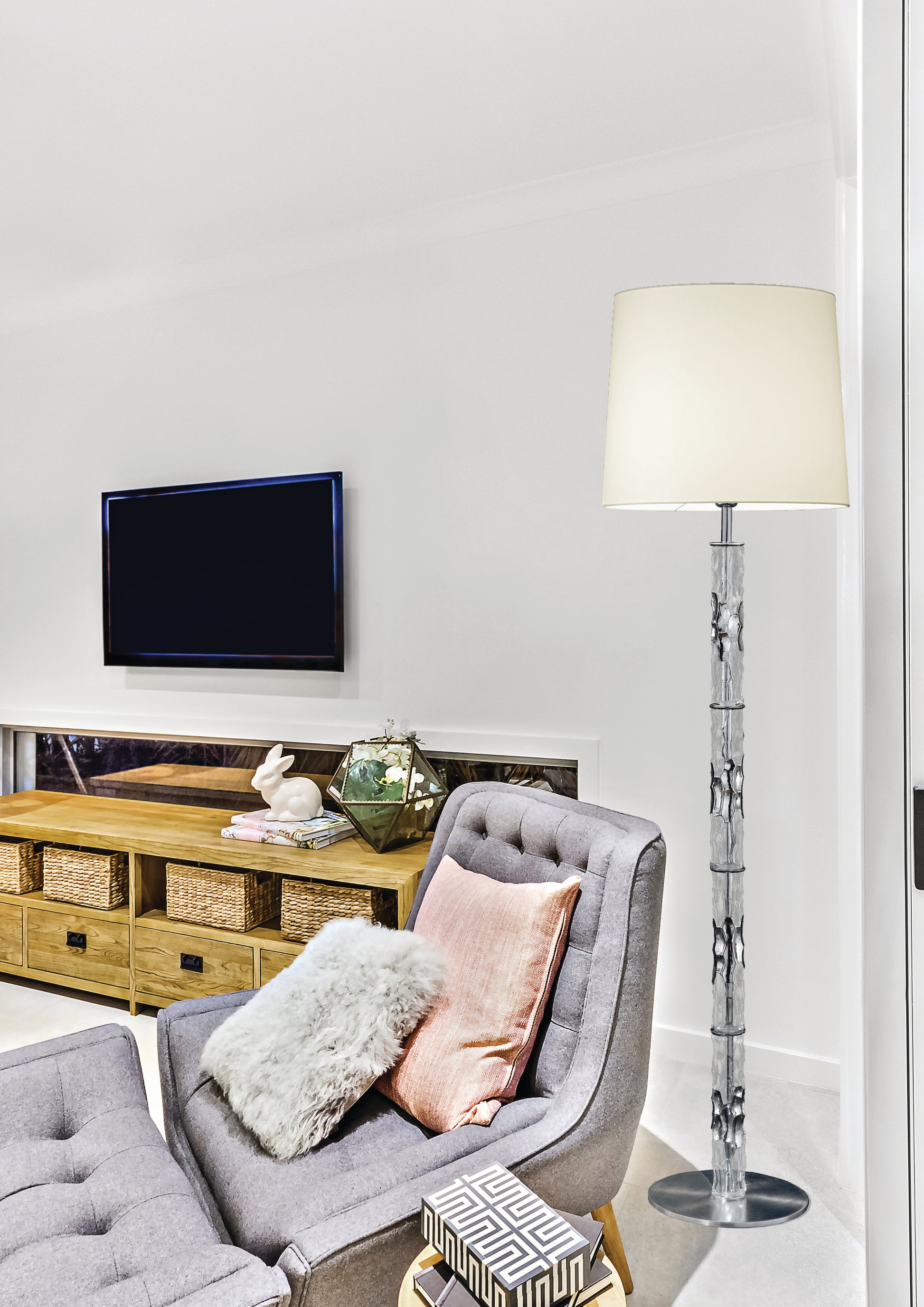 Fabric lampshades are available in chinette light grey or ivory and lamé silver or gold