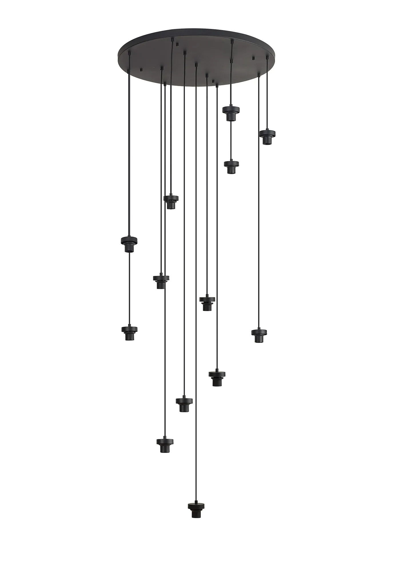 Bespoke Stairwell 13 Light Pendant Black Metalwork & Custom Glass - ID 13781