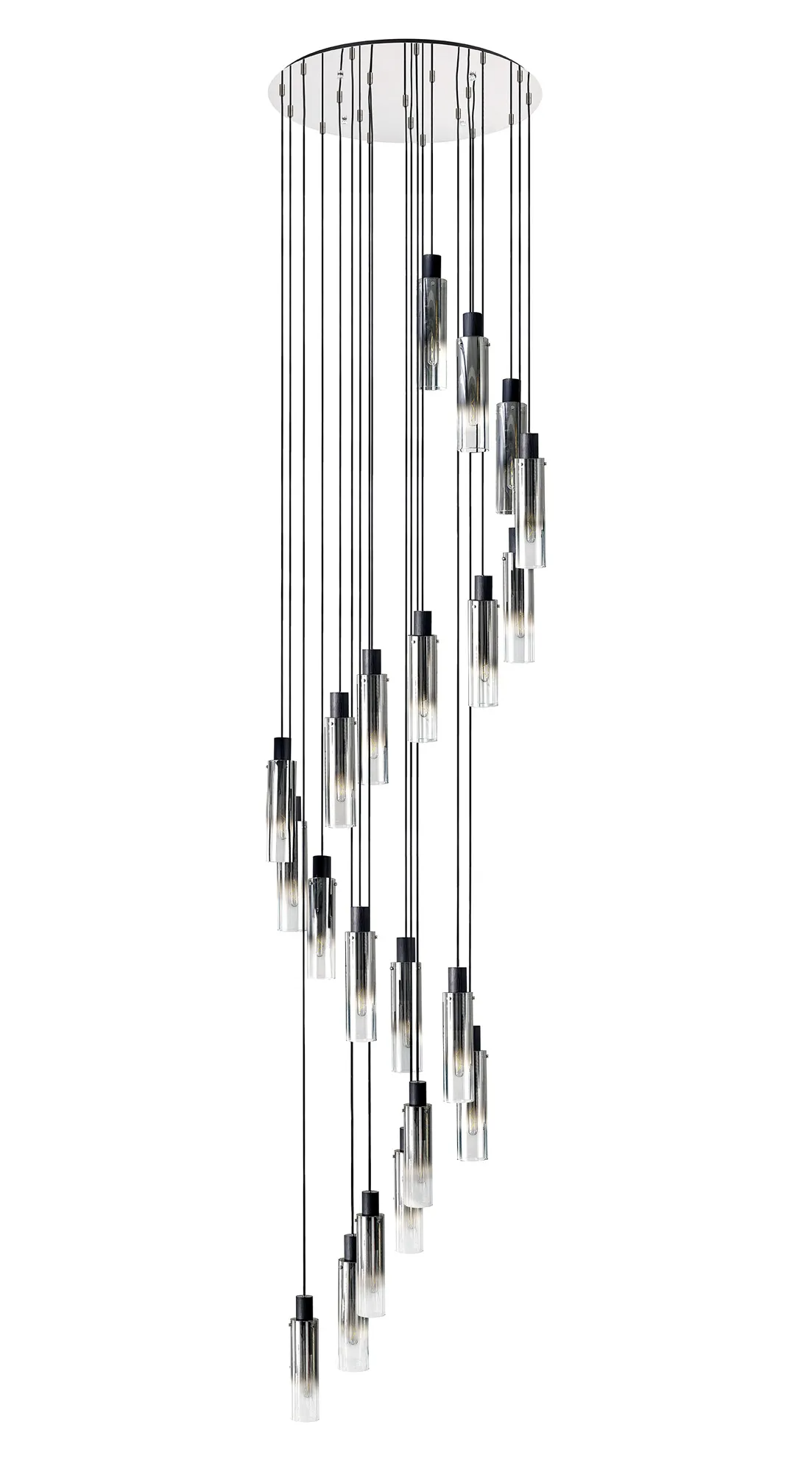 Bespoke Stairwell 21 Light Pendant with Black & Polished Chrome Metalwork & Smoke Fade Glass - ID 13779
