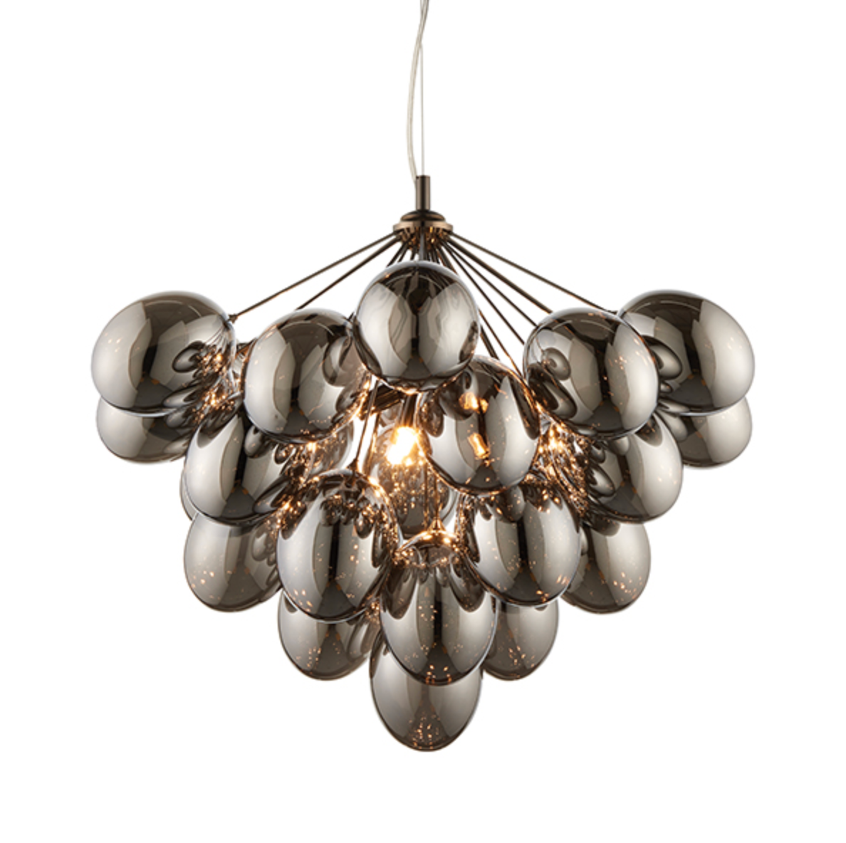 A stunning addition to modern interiors, the stunning black chrome plated Black Egg pendant creates amazing light patterns through multiple electro-plated dark chrome glass shades.