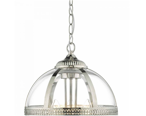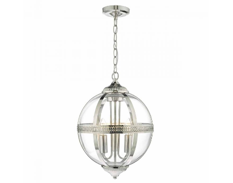 Cannich 3 Light Orb Lantern Pendant In Polished Nickel And Clear Glass - ID 9504