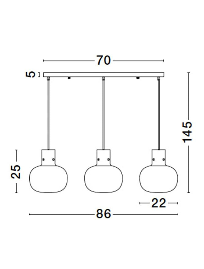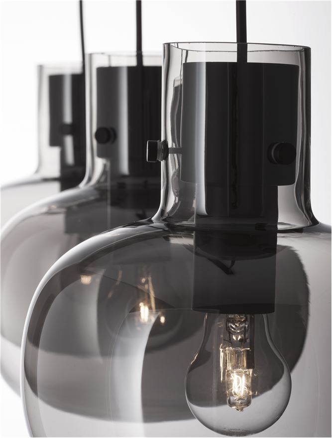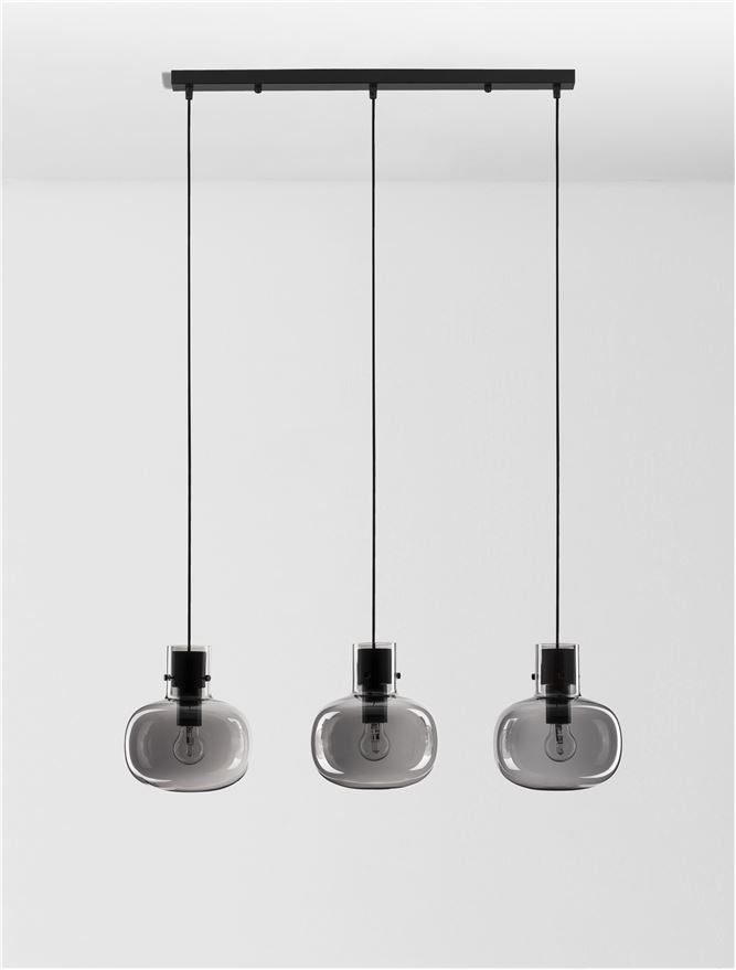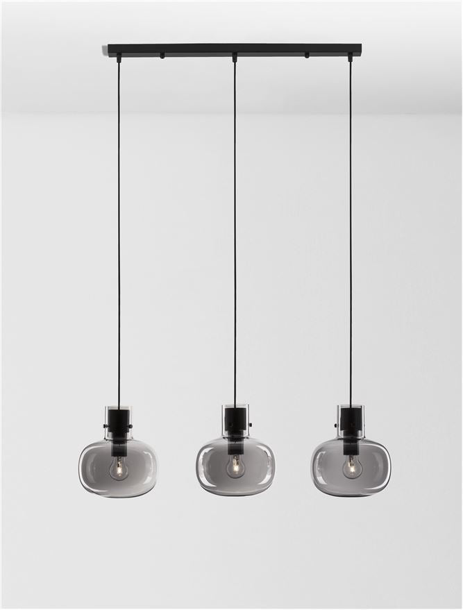 CIN Smoked Glass & Black Metal Linear 3 Lamp Bar Pendant - ID 11804
