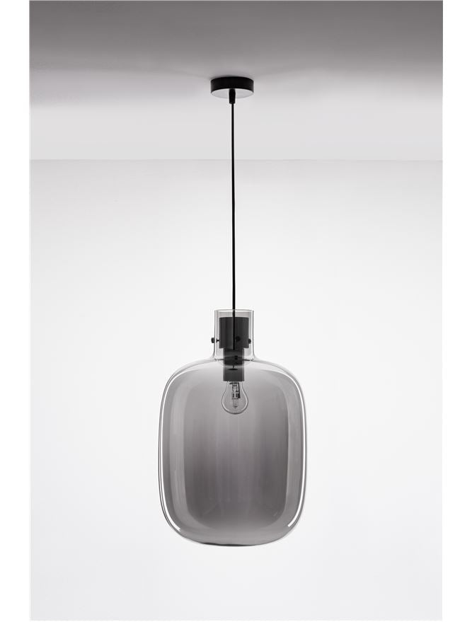 CIN Smoked Glass & Brass Black Large Single Pendant - ID 11805