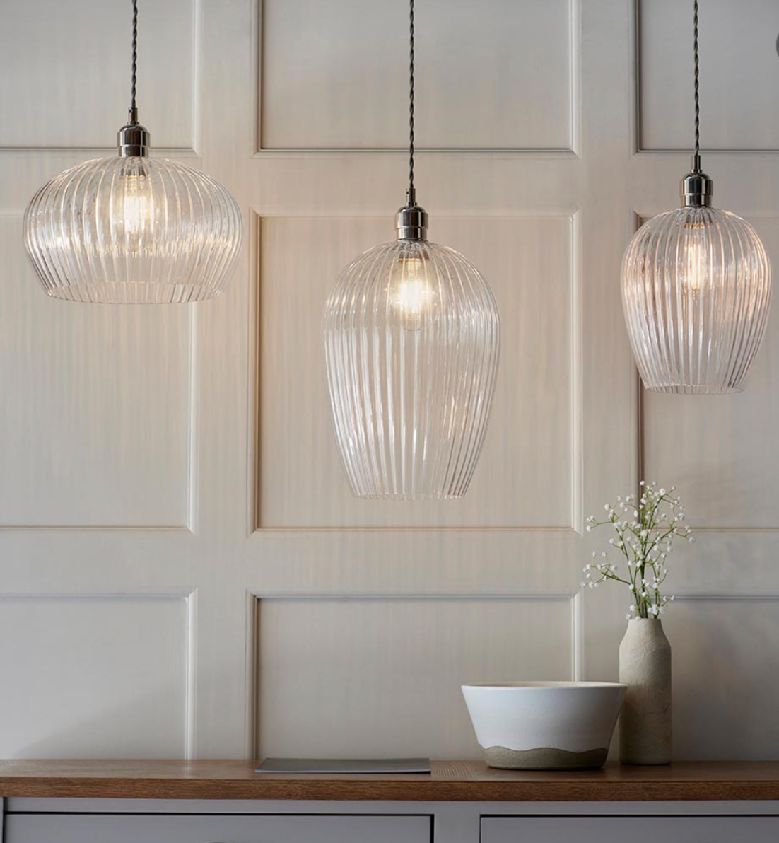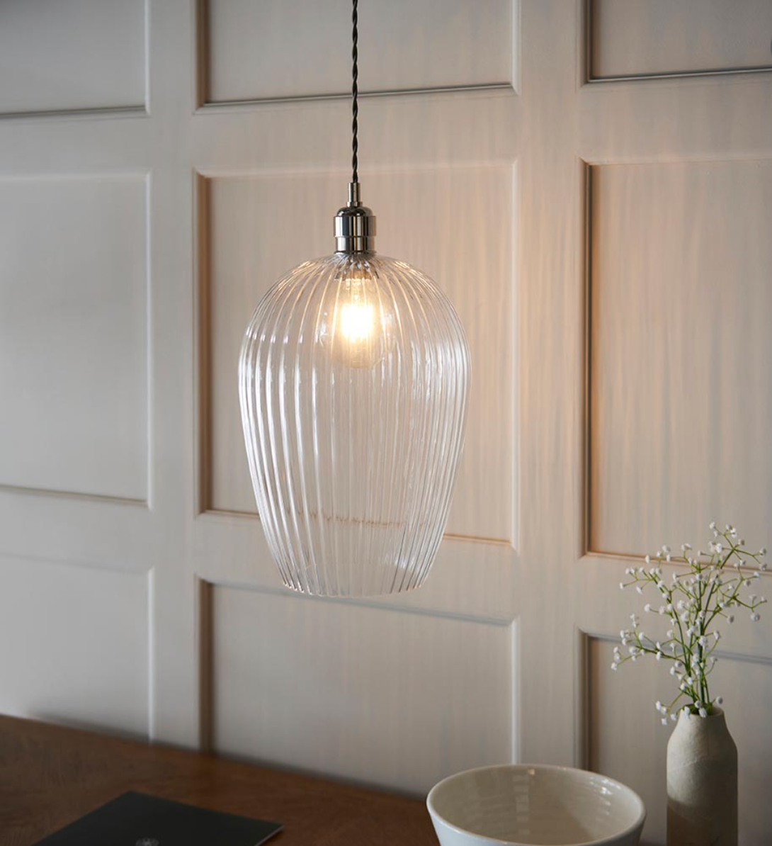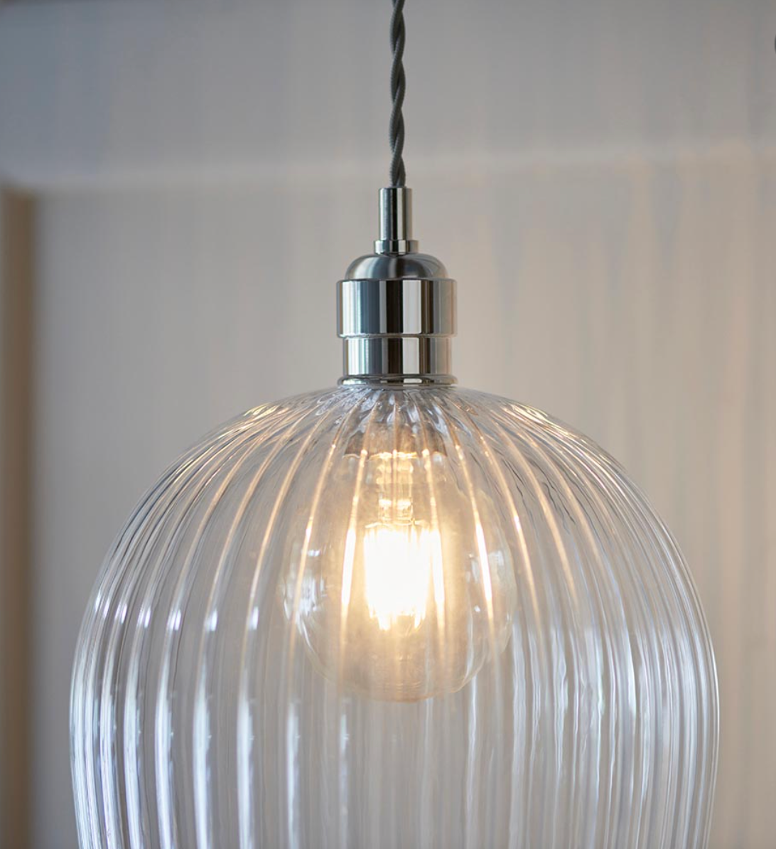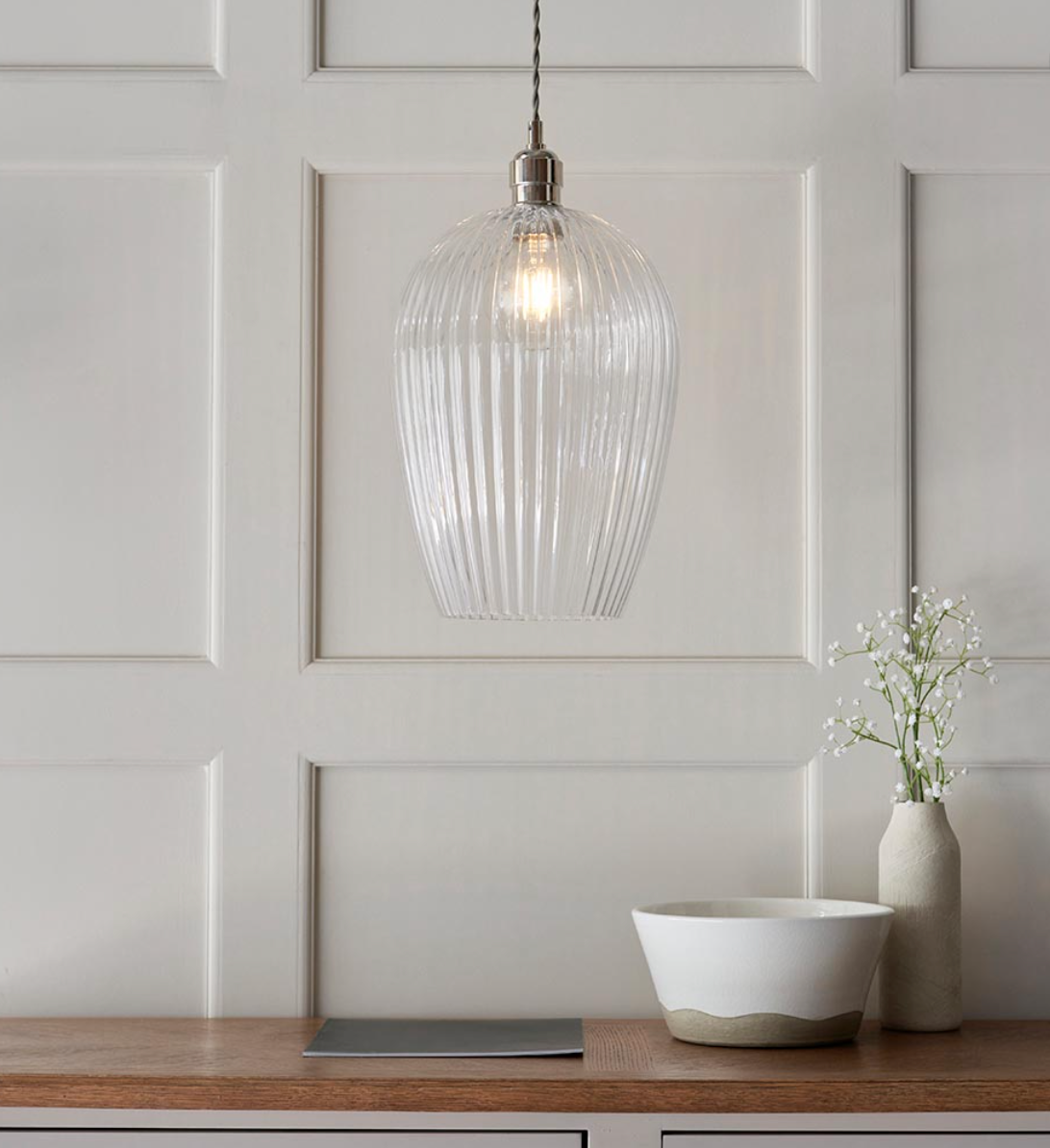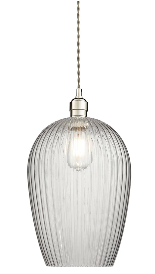 Ribbed glass & bright nickel large pendant - ID 12971 - largest of 3 sizes.
