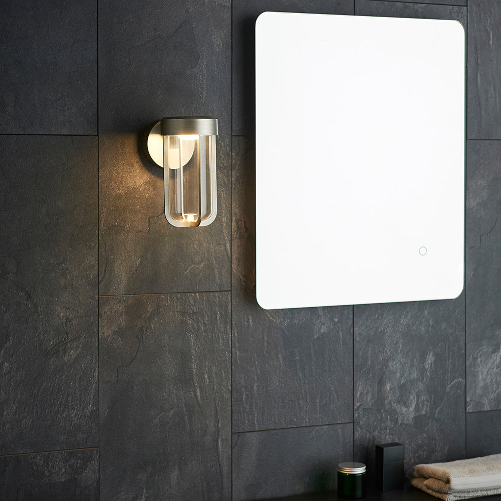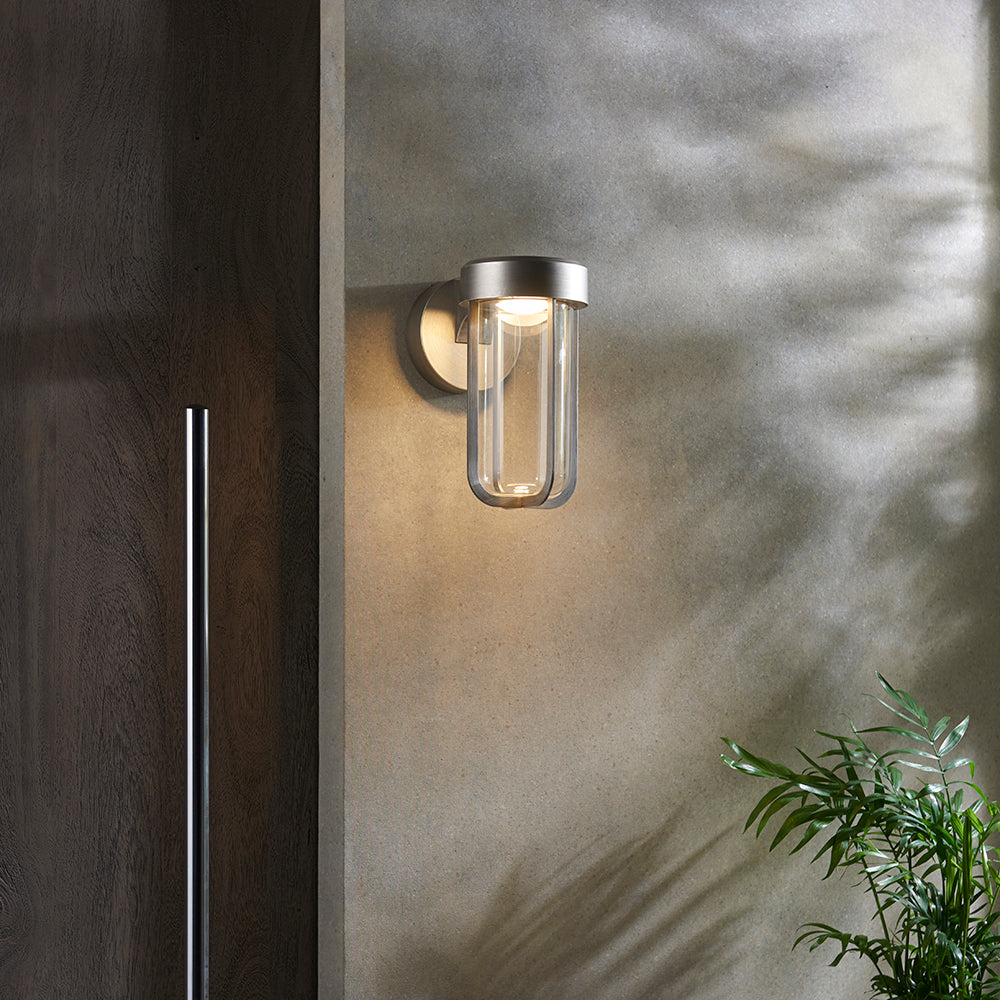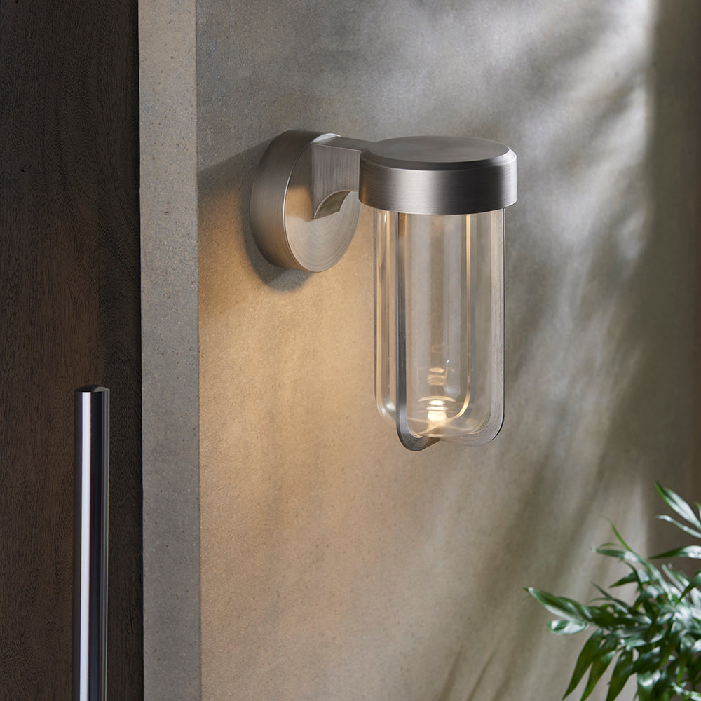 Die Cast IP44 LED Wall Light In Brushed Silver With Clear Glass - ID 11069