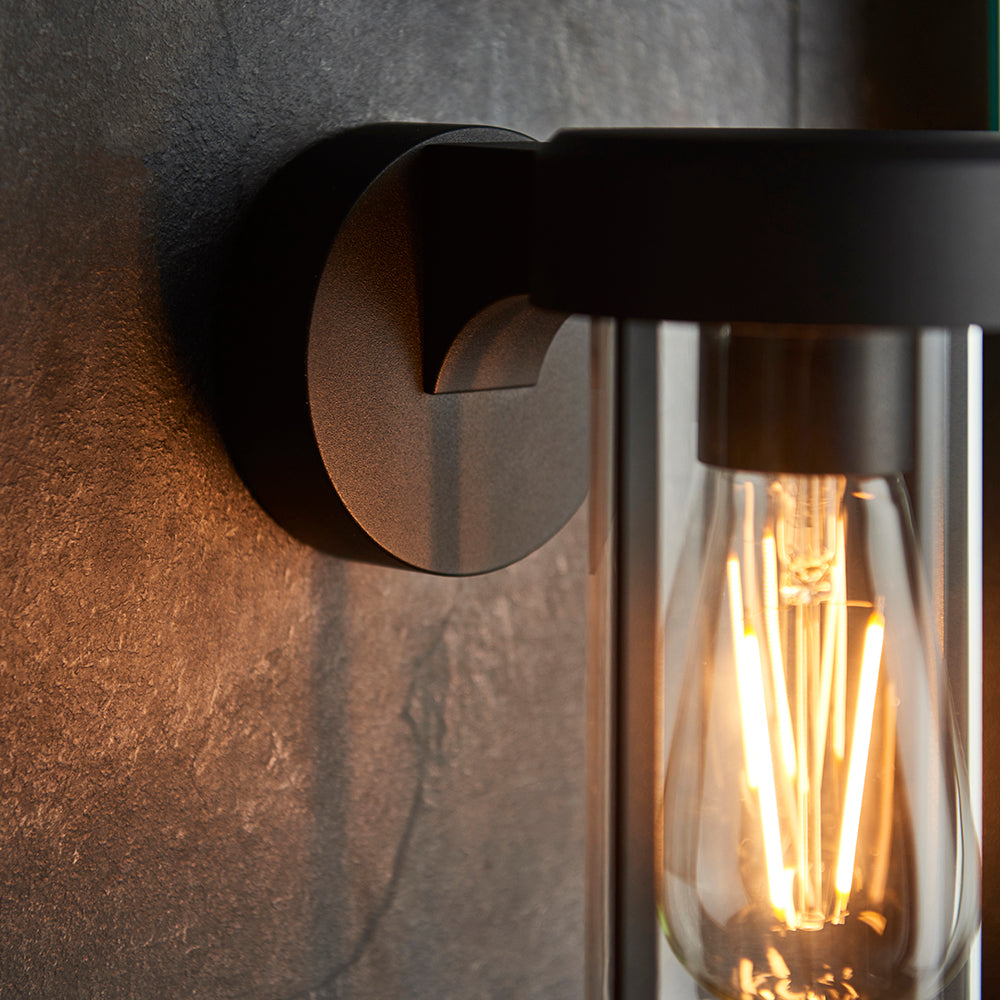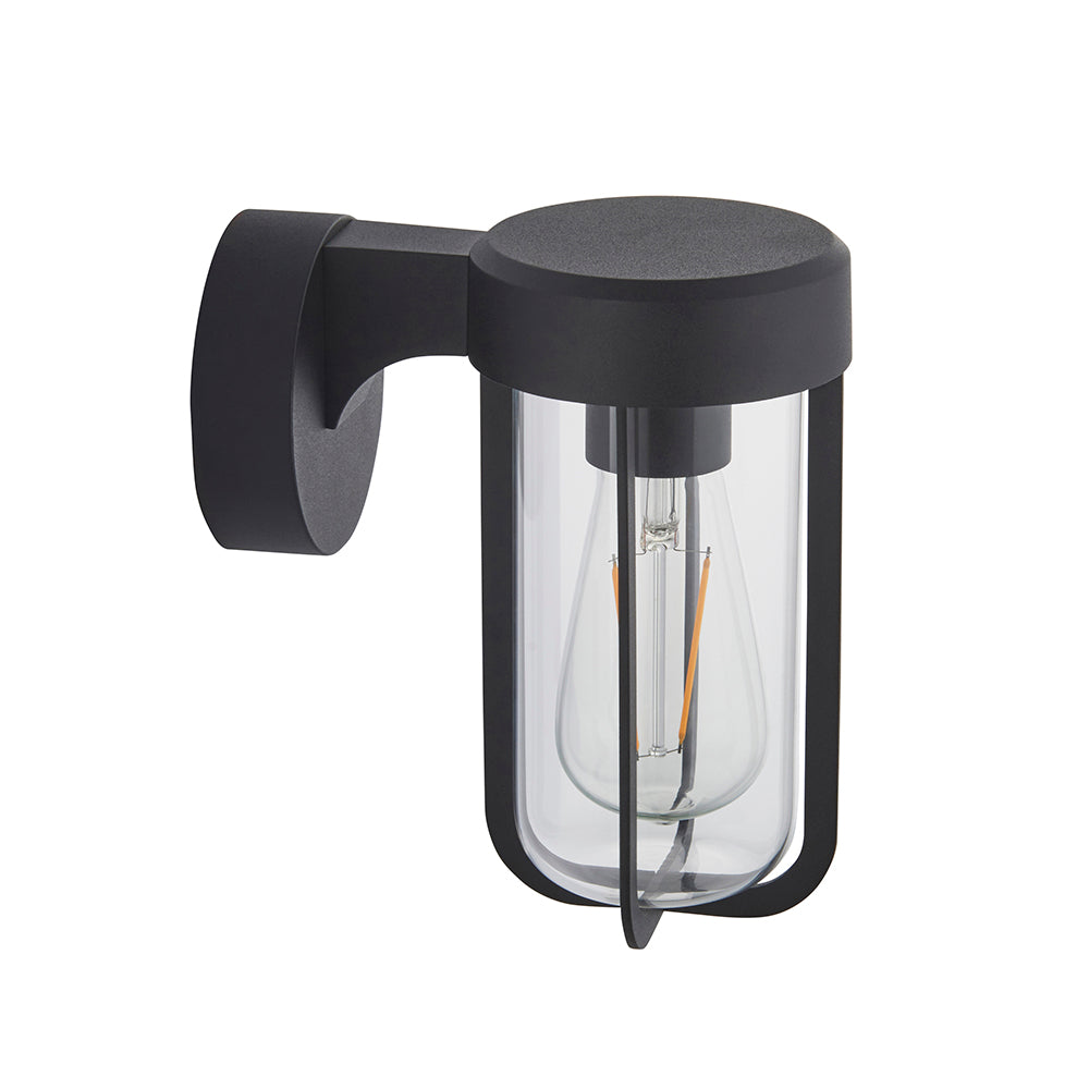 Die Cast IP44 Wall Light In Matt Black With Clear Glass - ID 11073