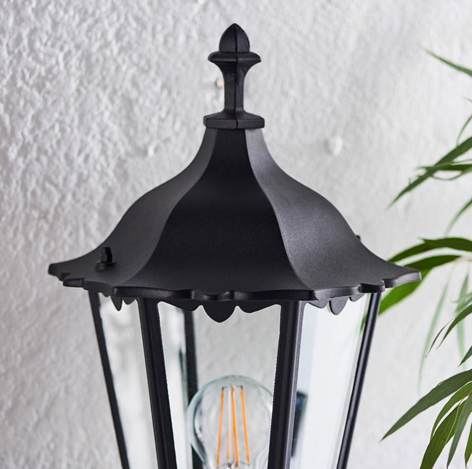 A timeless traditional exterior wall lantern, matt black painted die cast aluminium with clear glass panels and decorative details. Featuring a PIR sensor with adjustable detection angle, timer function. Combine with a filament LED lamp to create an authentic look of the past.