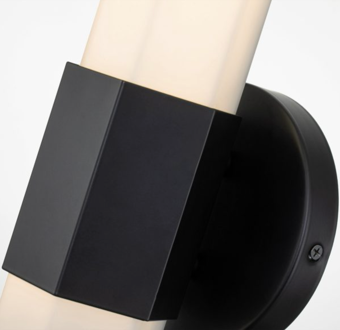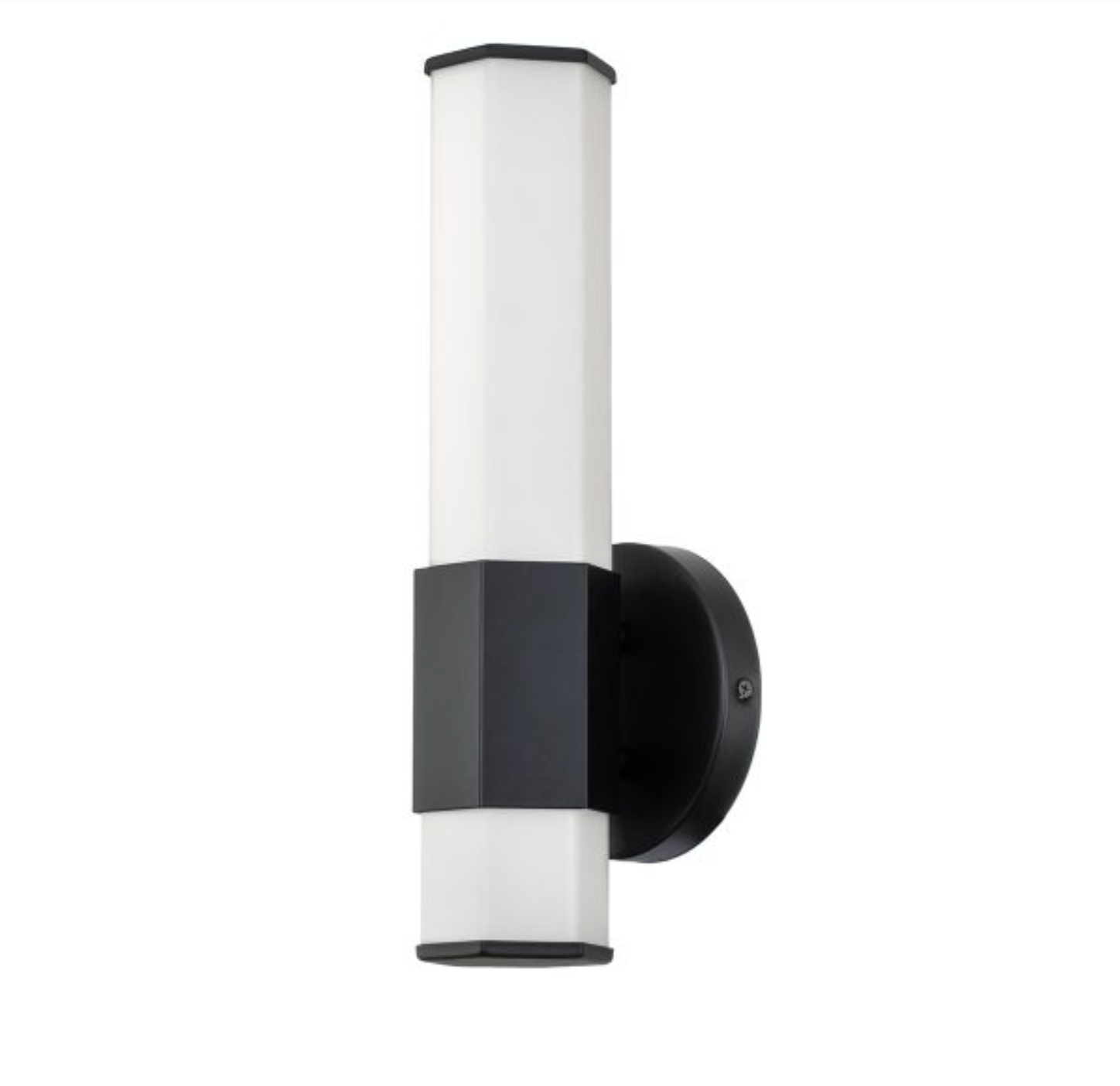 FAC Hexagonal Opal Glass & Matt Black Bathroom Wall Light - ID 12557