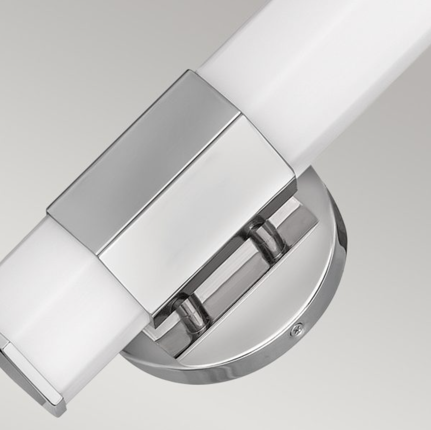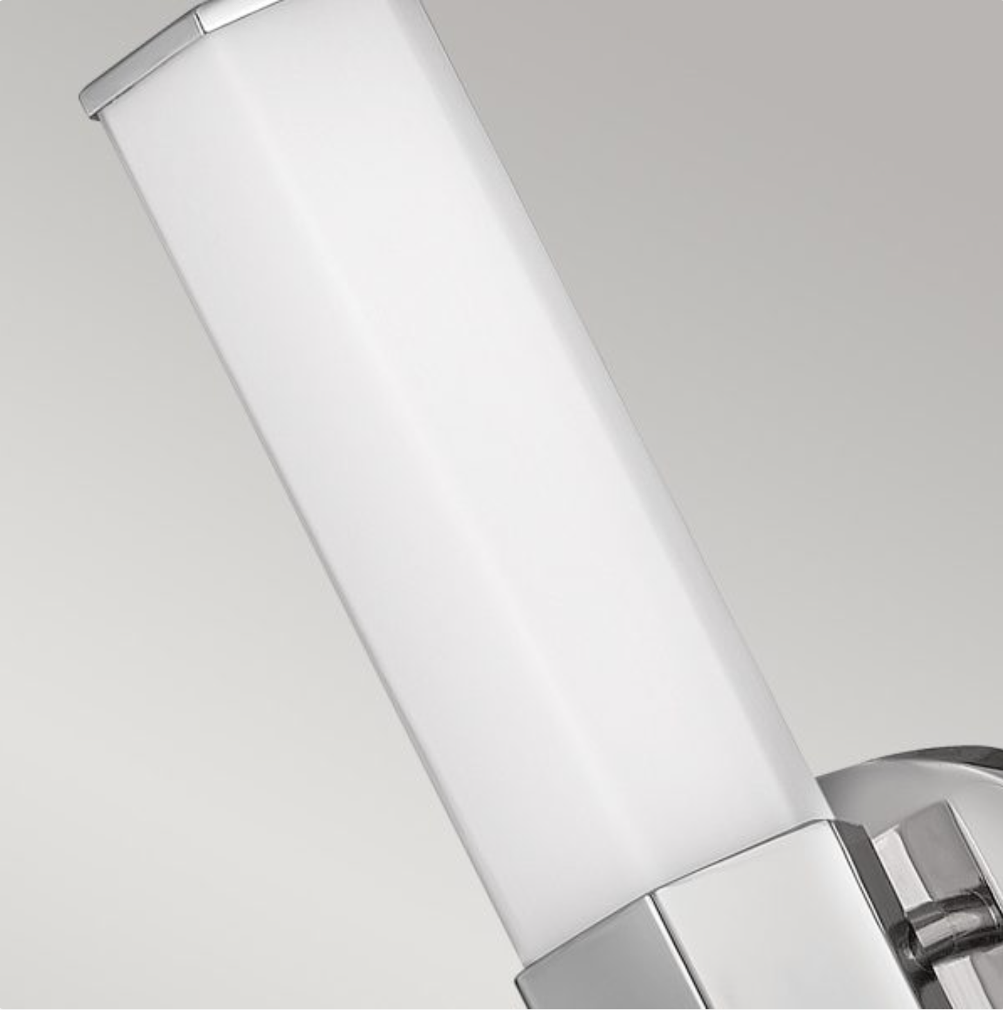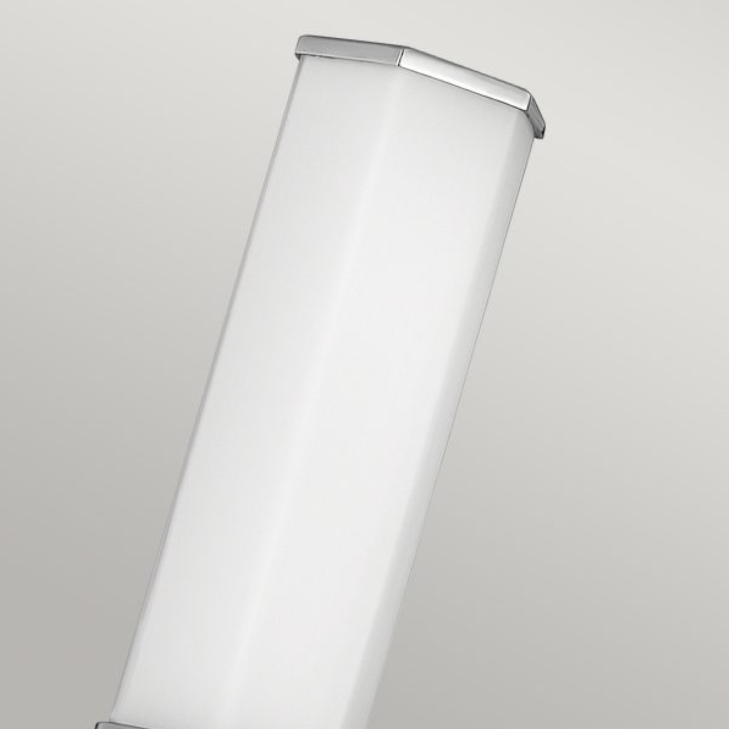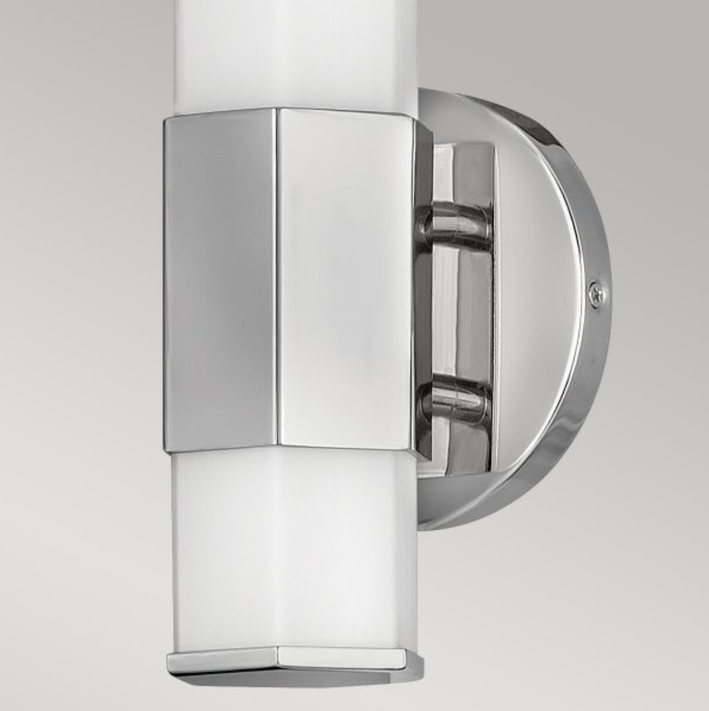 This Hexagonal Opal Glass & Polished Chrome Bathroom Wall Light adds a touch of sophistication and luxury. The timeless design features a hexagonal opal glass and a durable polished chrome construction for long-lasting use and durability. Mix modern and classic styles for a timeless addition to your bathroom.