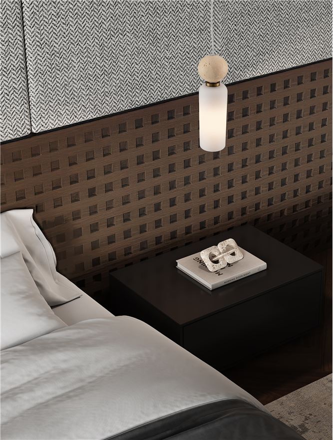 FIL Neutral Stone Travertine & Opal Glass Pendant - ID 14126