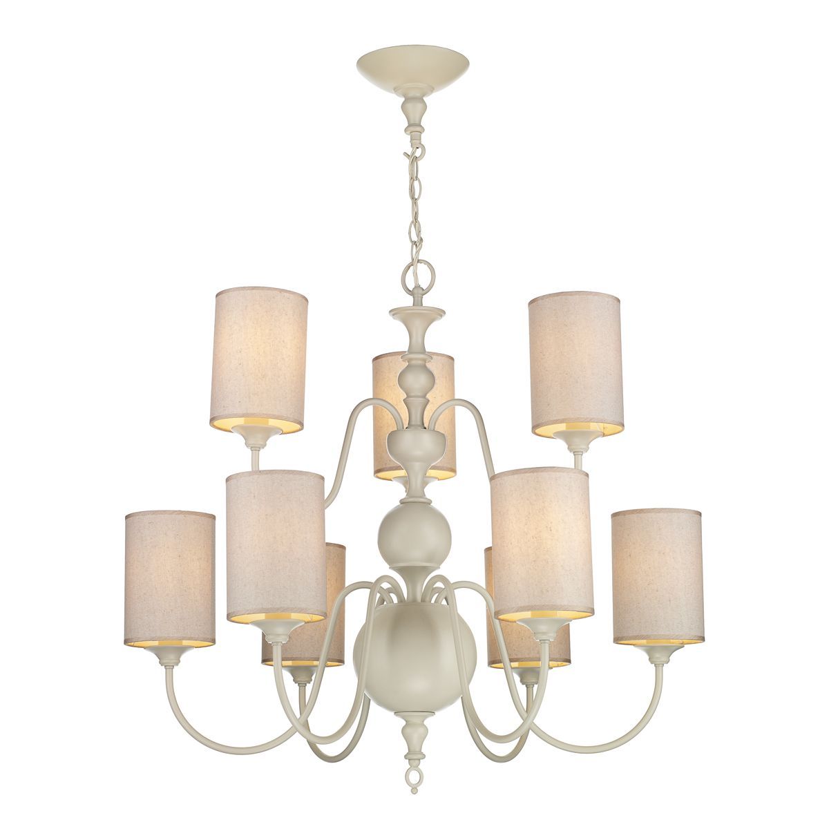 Handcrafted traditional 9 arm chandelier in a smooth cream finish, complete with cream linen shades.
