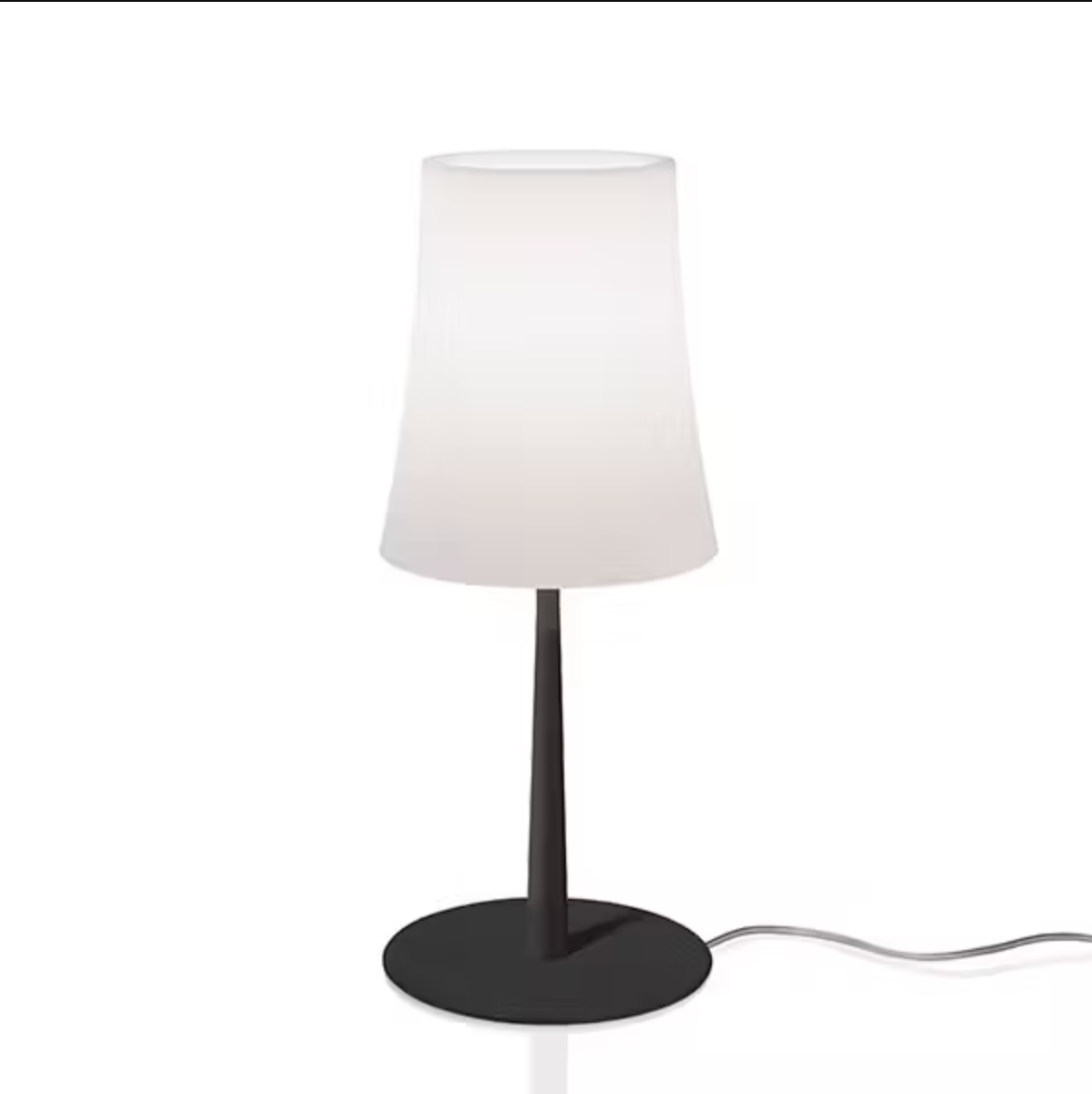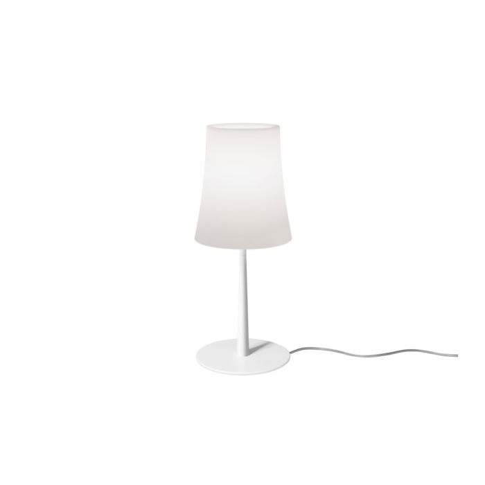 Always monochromatic, from lampshade to the base for a decisive character without compromises. There are two dimensions available for the table lamp, designed to blend in easily with the surroundings. Whether beside an armchair or a sofa in the living room, on the desk in a study, on a bedside table, or in any other room of the house, Birdie fits naturally in and accompanies everyday life with a pleasantly stylish presence.