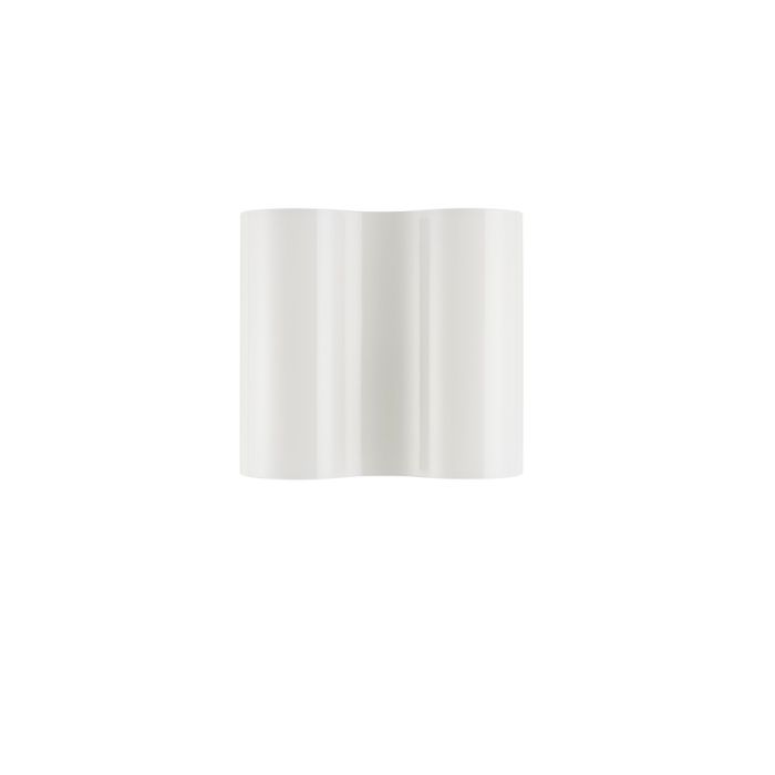 A flexuous volume in blown glass, a closed line that wraps the two light sources and forms a curve towards the wall across the separating space. The movement of the diffuser is emphasized by its glossy surface, in an elegant game of reflections. For intense light that projects beams upward and downward on the wall.