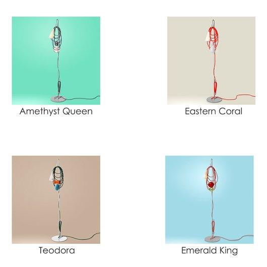 This is a work of art, the result of the designer’s idea to reduce a lamp to its constituent parts before putting them back together. Unconventional and with great décor appeal, the Filo floor lamp is an abacus of colours in which even the electrical cable becomes a decorative element.