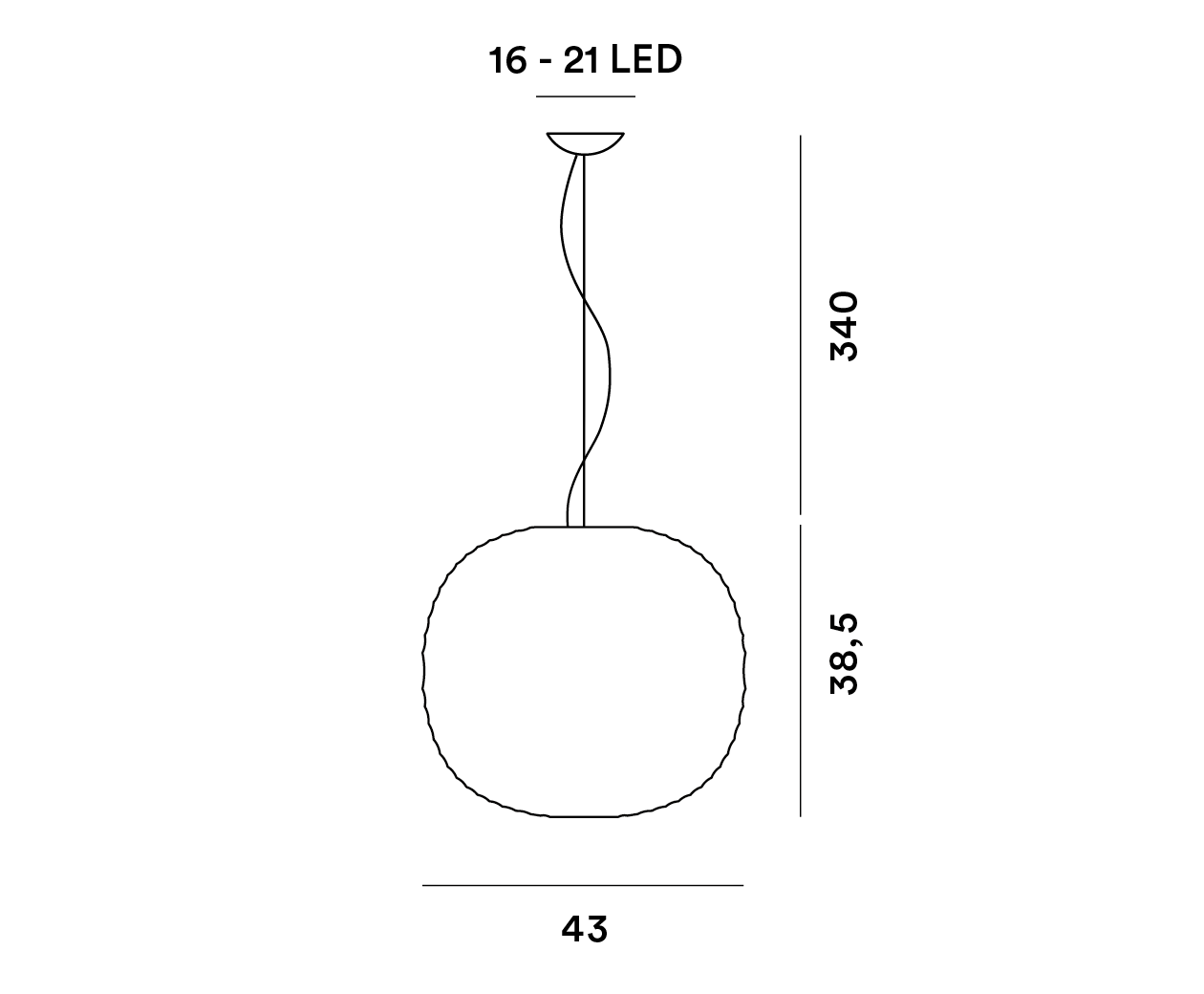 A fluid vibration on glass, with special craftsmanship that makes it unique also when off. The three-dimensional facets, with lines intersecting on the surface, are made by blowing glass into an etched mould.