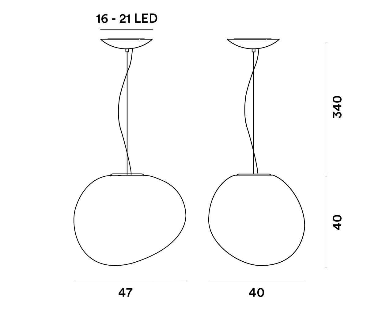 One of the most versatile collections, ideal for insertion in any type of context. The white frosted shade with its organic, asymmetrical form emits warm, uniform light. The closed form makes it easy to insert at different heights. Arranged in compositions, it offers a surprising range of applications.