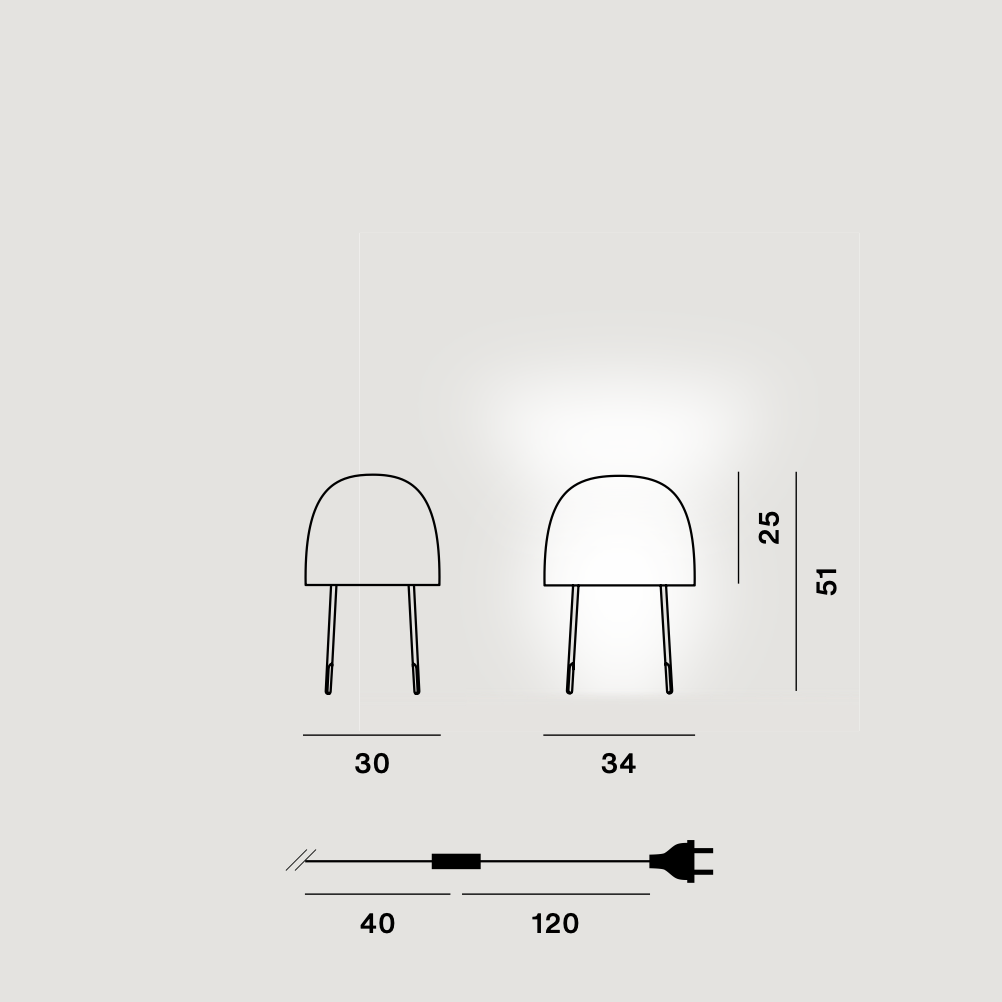 With its poetic spirit and fine workmanship, the lamp relies on 3D shaping of Japanese washi paper to filter light, creating a relaxing, warm atmosphere. The slender legs in ash wood, ceramic bulb housing and sheathed Cable complete the design.