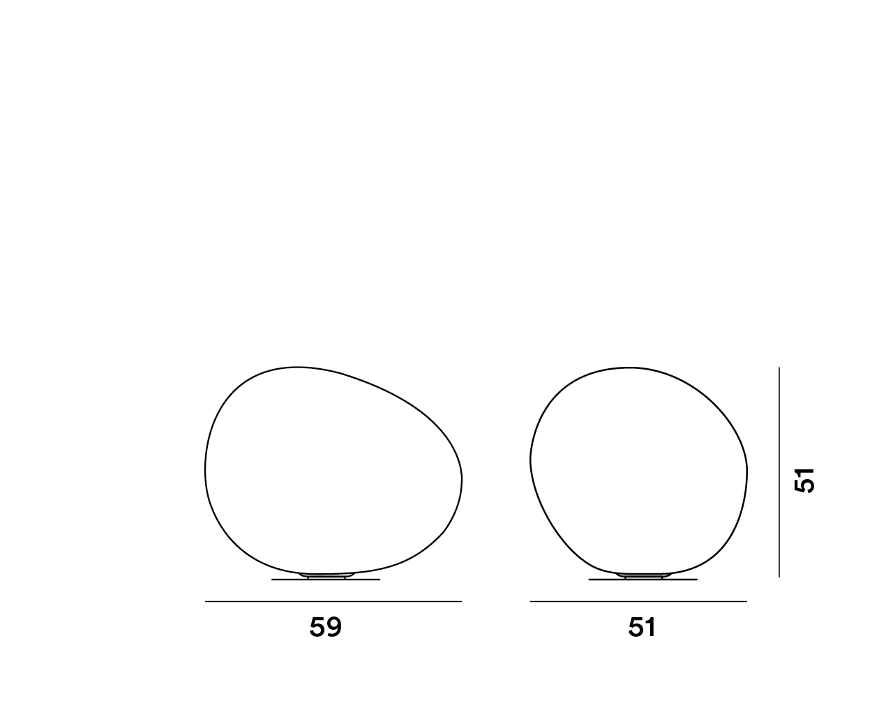 The organic, familiar design of Gregg, reproduced in a polyethylene version, a material that is light and resistant to impact. Available in Three different sizes to fit into any situation, creating free compositions. For pleasant, diffused light.