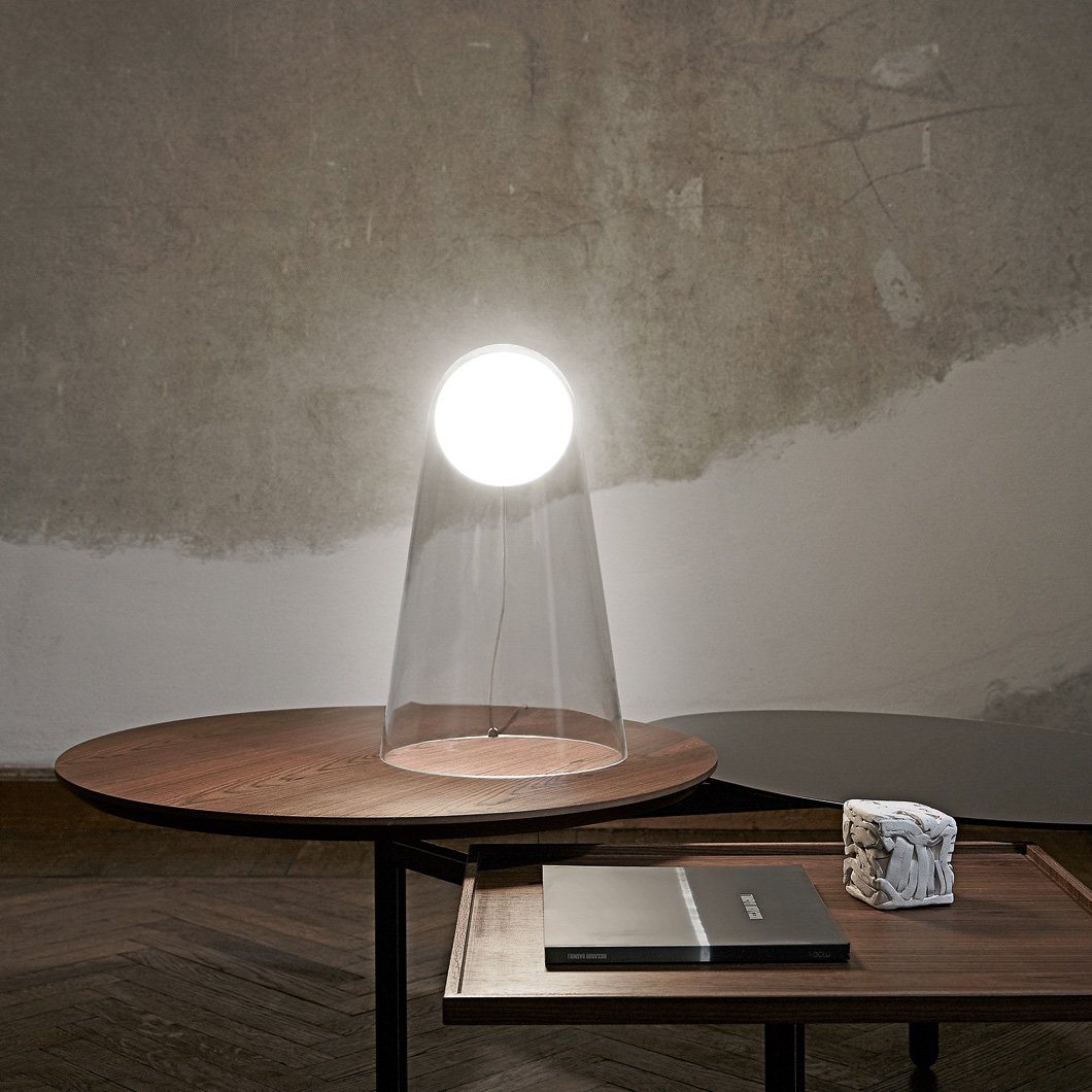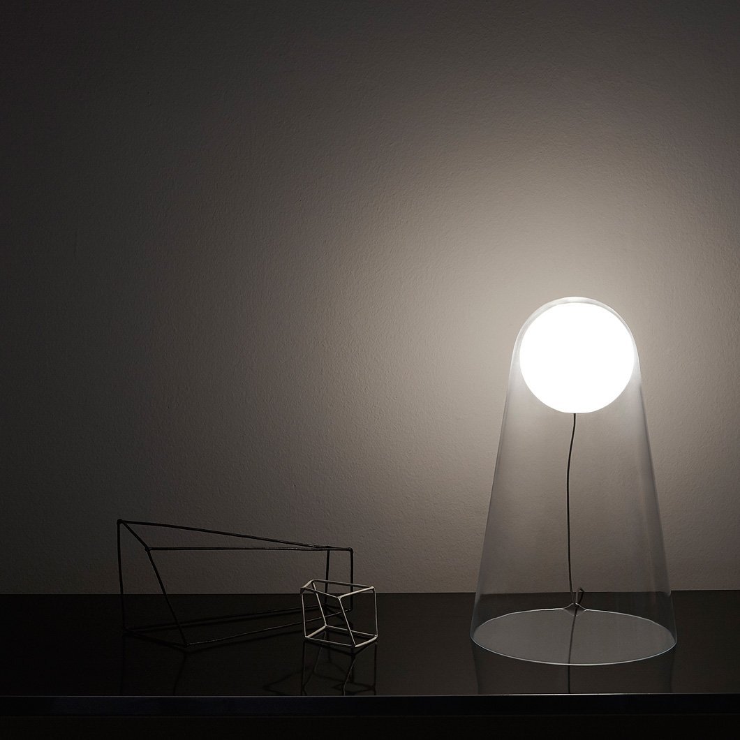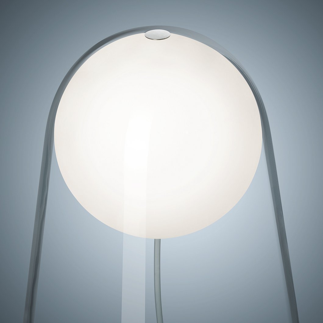 A luminous, suspended globe is the heart of Satellight. The blown glass diffuser in a milky white shade is inserted in a volume of transparent crystal, which supports the luminous sphere as if by magic. For soft, warm lighting.