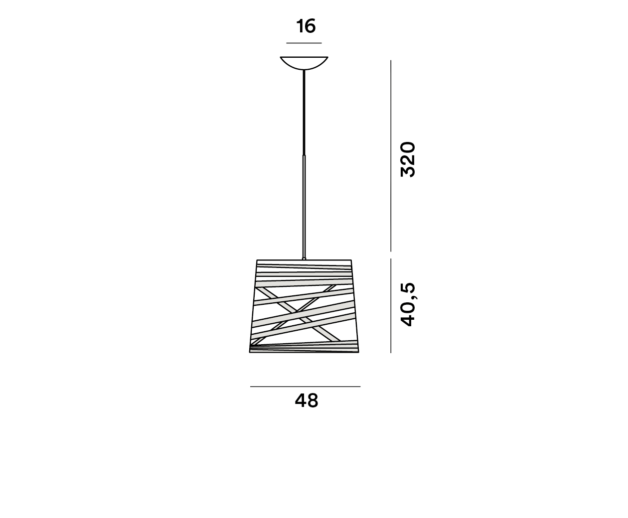 Dimensions: Body height 40.5cm; total drop up to 360.5–1040.5cm (height adjustable at installation); diameter 48cm; ceiling rose diameter 16cm. Weight approx. 4.9kg.