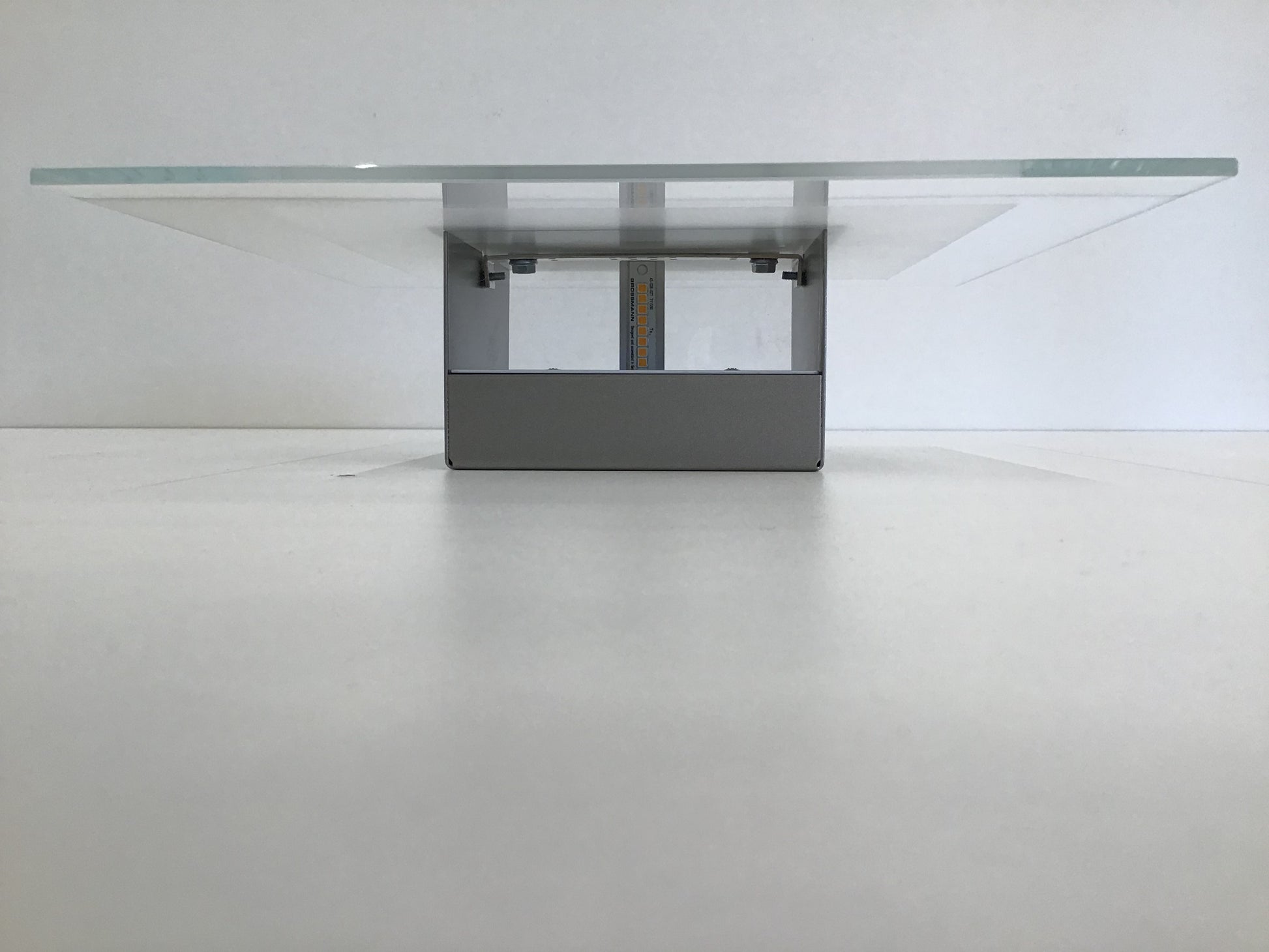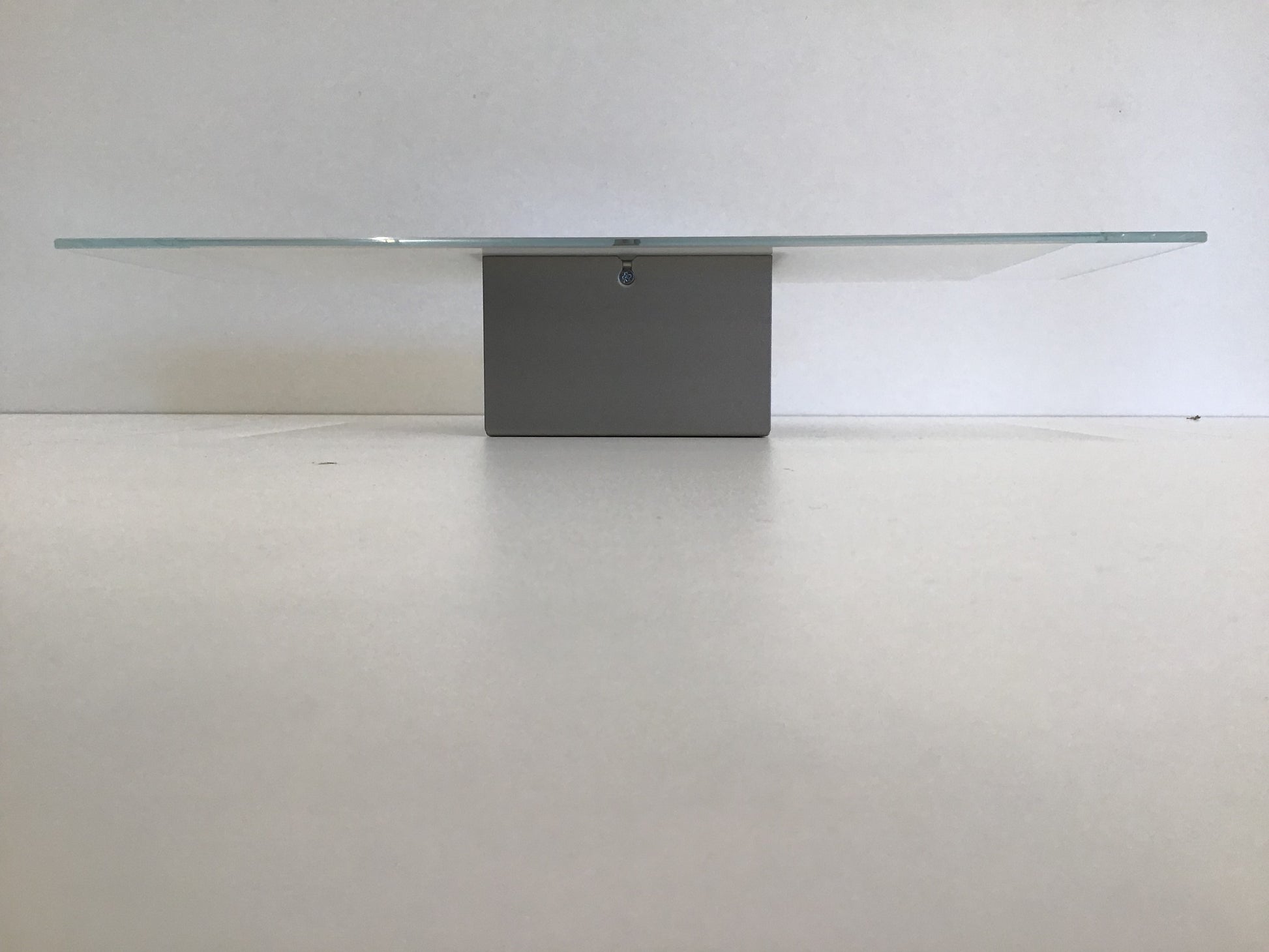 The flat glass has a crystal outer clear with a bevelled edge and acid etched centre.