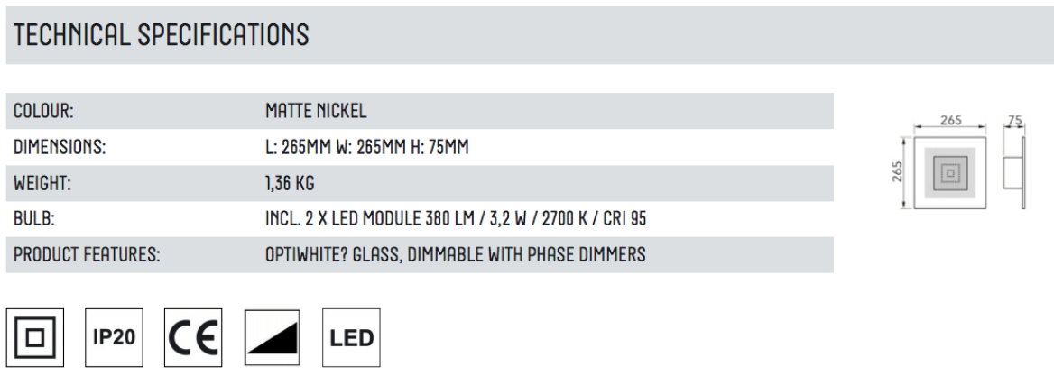 Included: 2 X LED MODULE 2 x 380 Lumen output | 3.2 W | 2700 K warm white | CRI 95