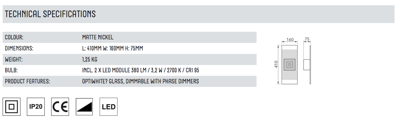 Included: 2 X LED MODULE 2 x 380 Lumen output | 3.2W | 2700 K warm white | CRI 95