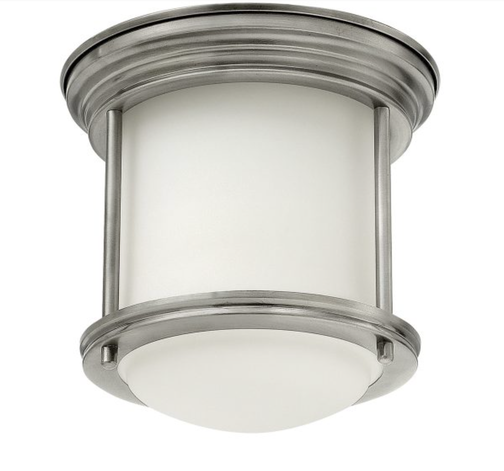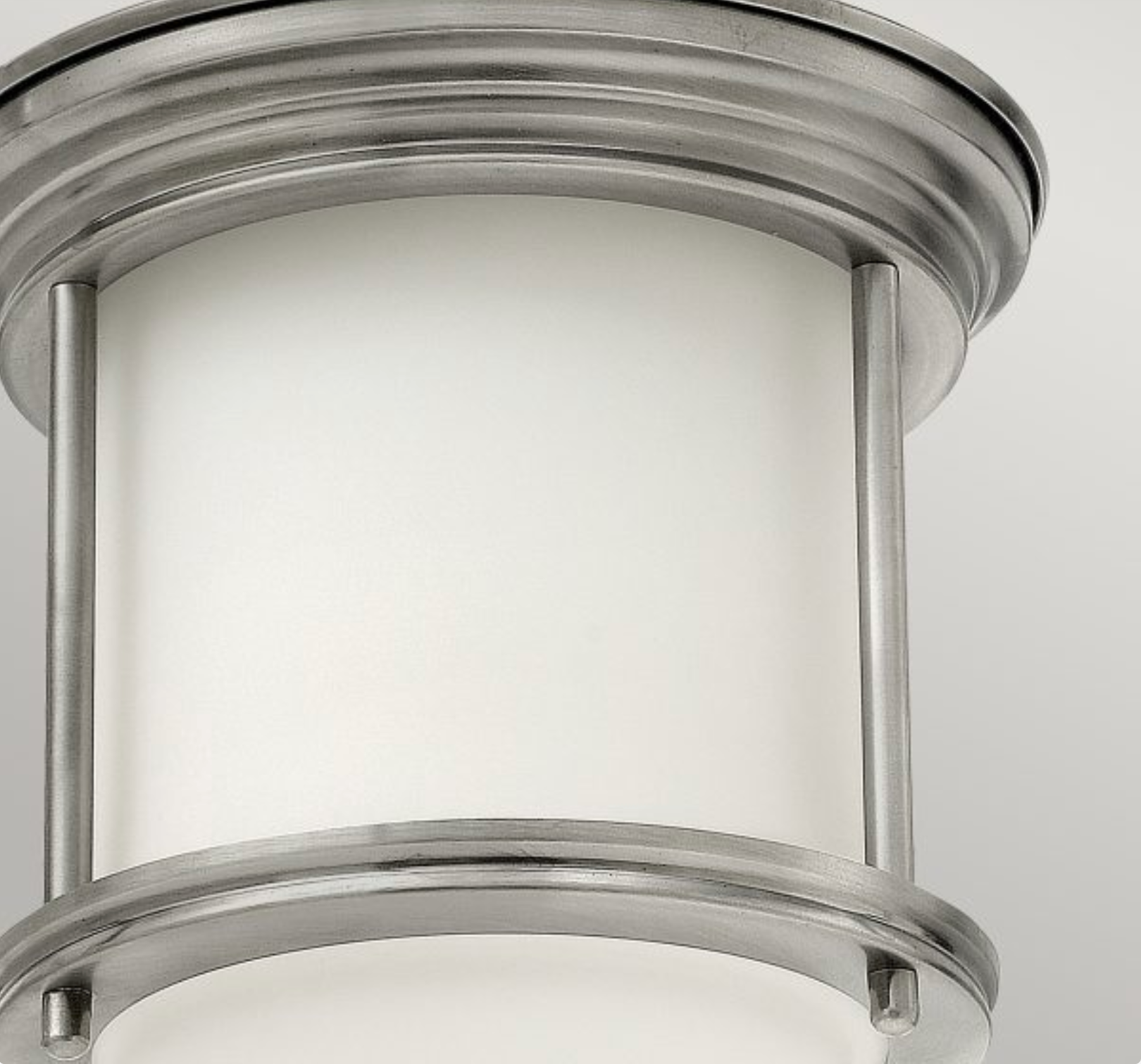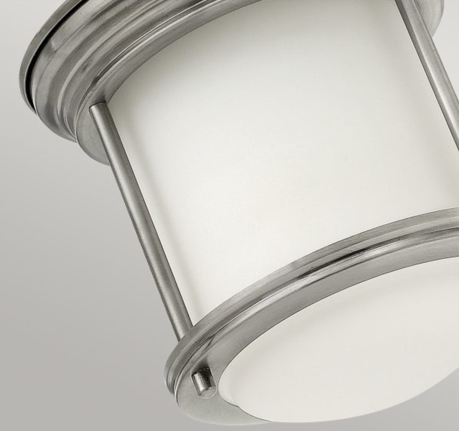 HAD Antique Nickel & Opal Glass One Lamp Semi Flush IP44 Ceiling Light - 12569