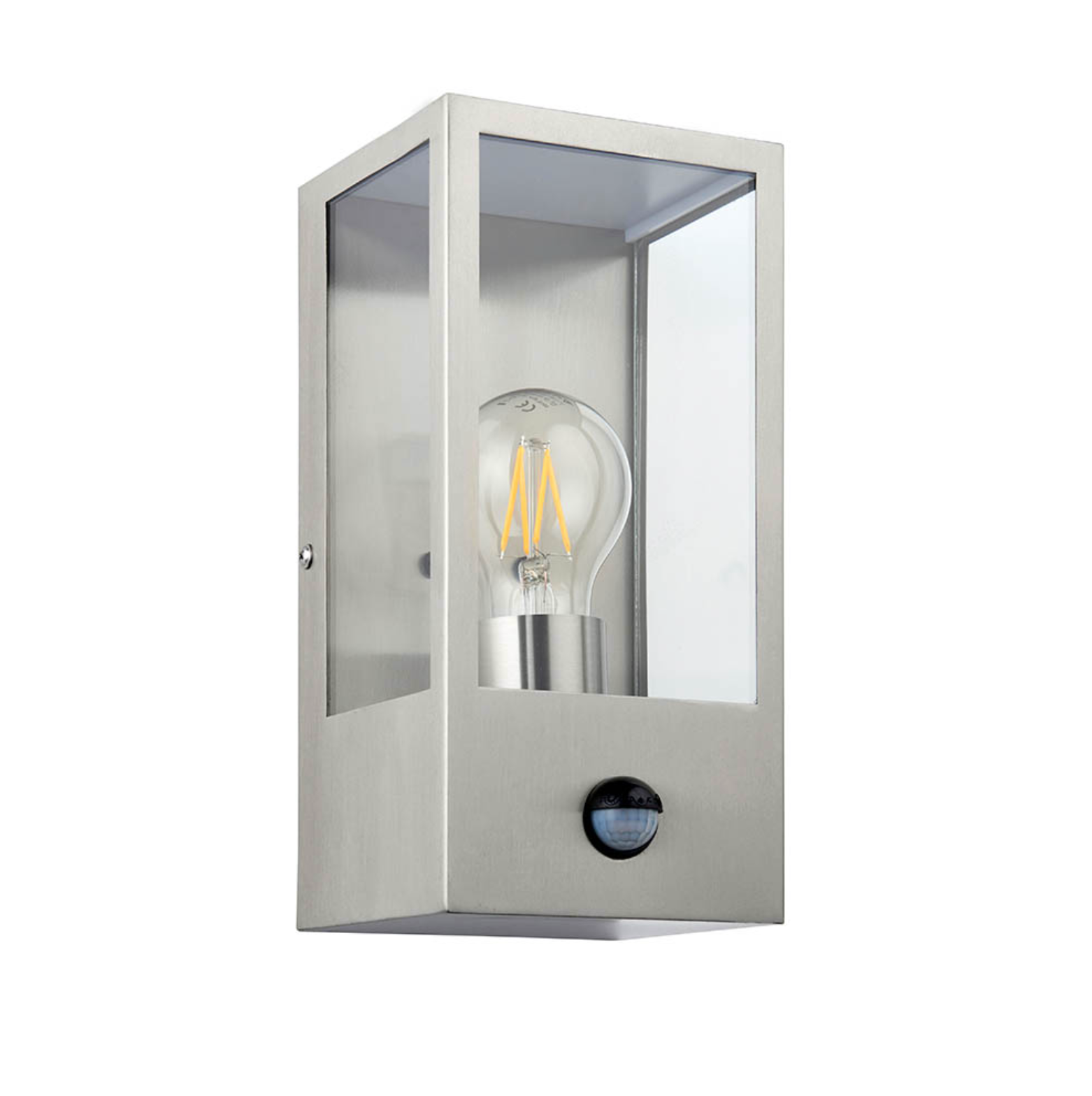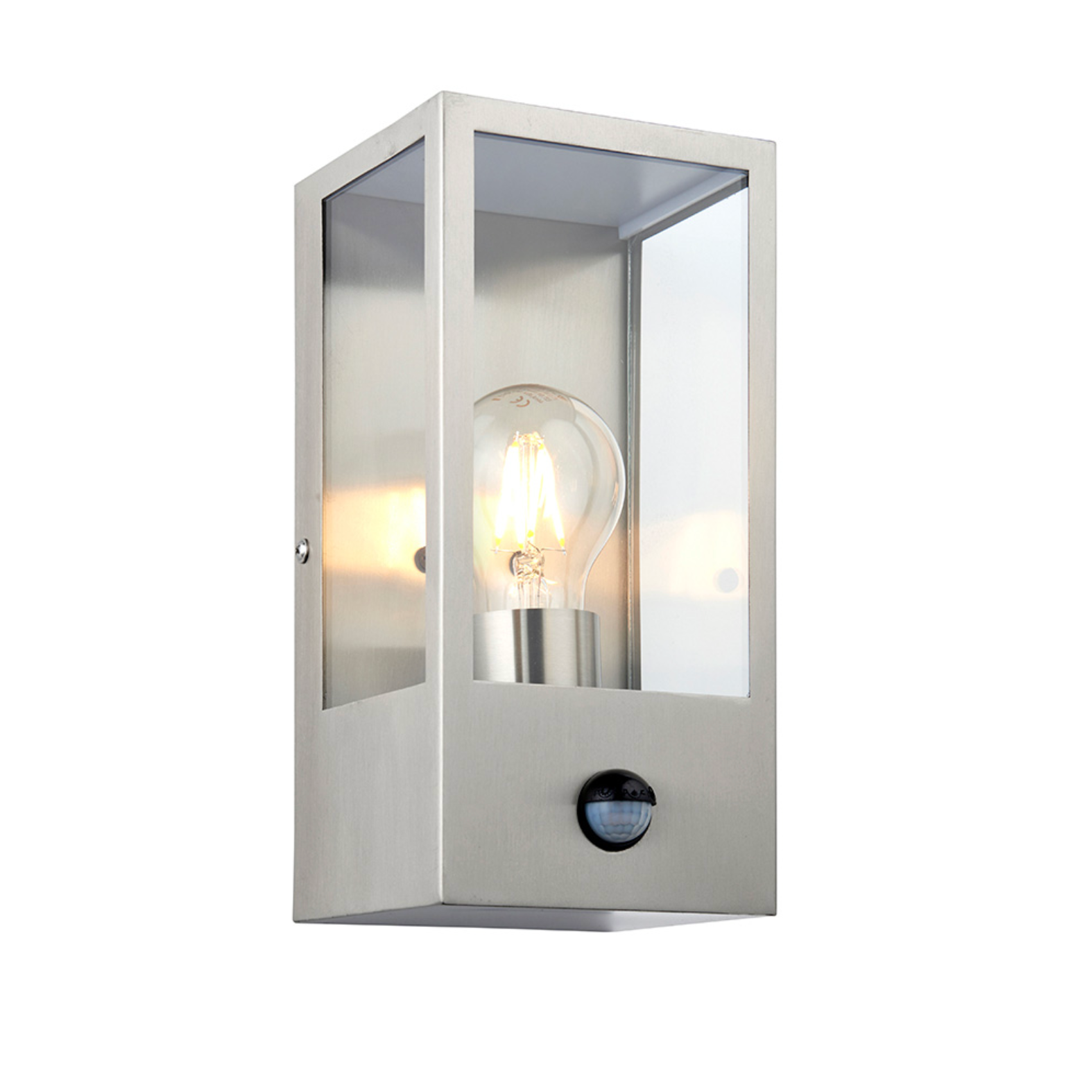 Hadlow PIR Outdoor Box Lantern Brushed Stainless Steel - ID 12069 - DISCONTINUED
