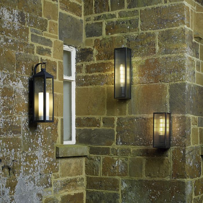 Halcrow Rubbed Bronze & Ribbed Glass Large Outdoor Wall Light - ID 9281