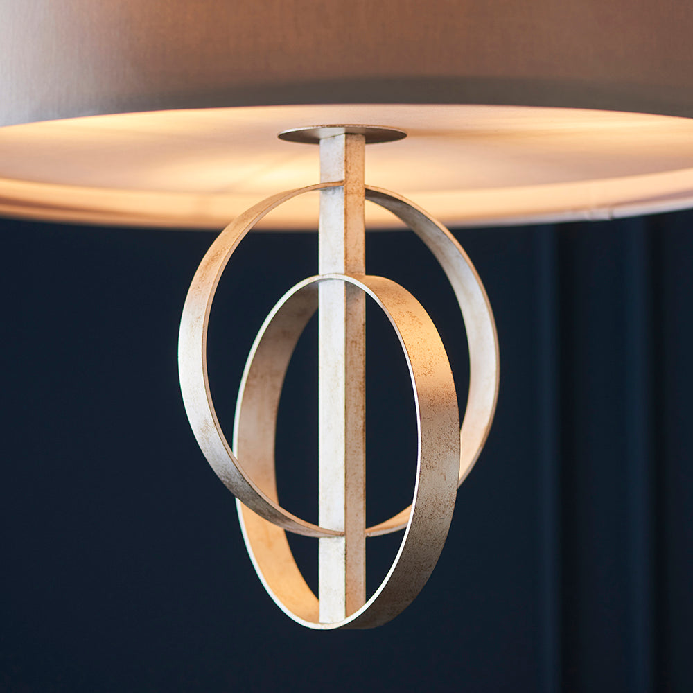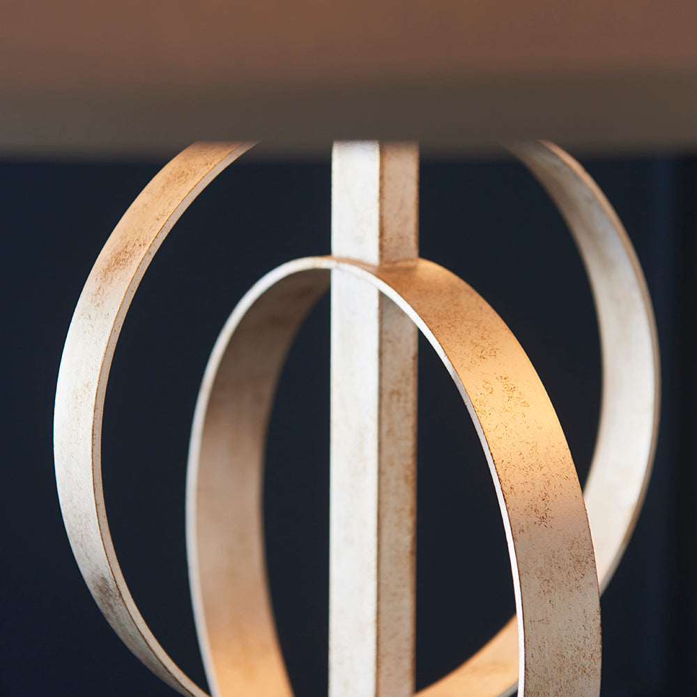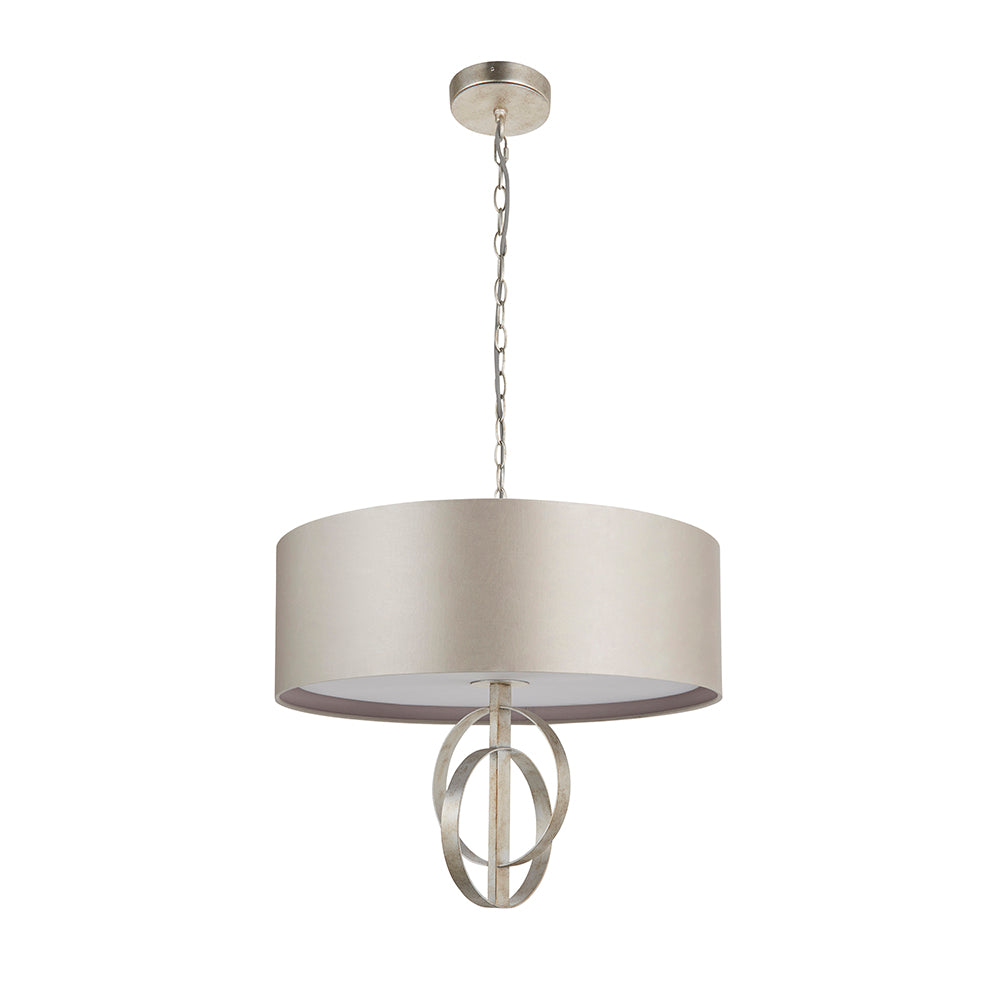 Hoop Detail Medium Three Light Pendant In Silver Leaf With Mink Satin Fabric - ID 11171