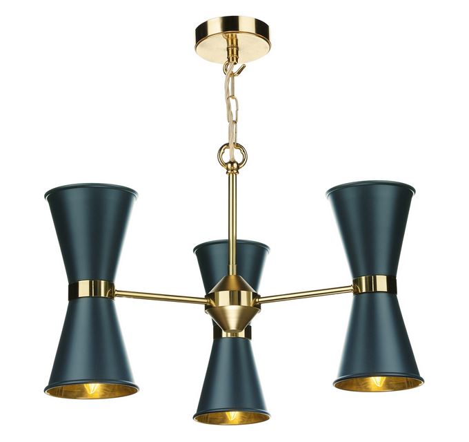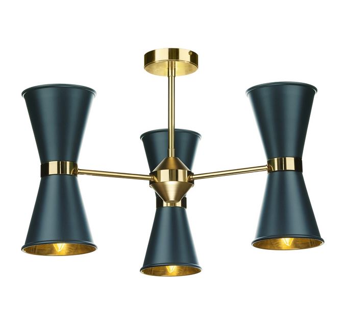 Hyde Brass and Blue Up and Downlight 6 Light Pendant/Semi Flush - ID 10044