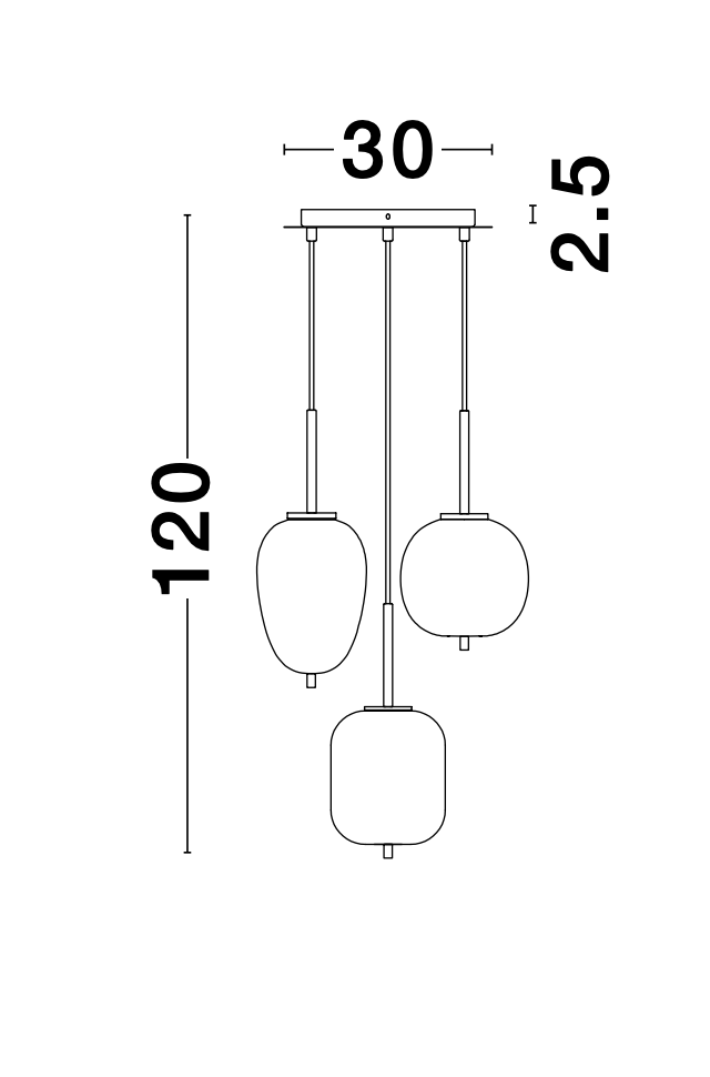LAT Brass & Opal Glass Cluster Triple Pendant - ID 9954