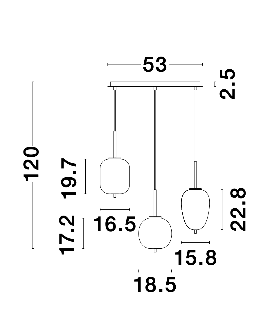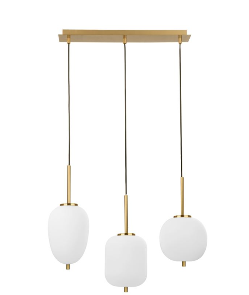 LAT Brass & Opal Glass Linear Triple Pendant - ID 9953