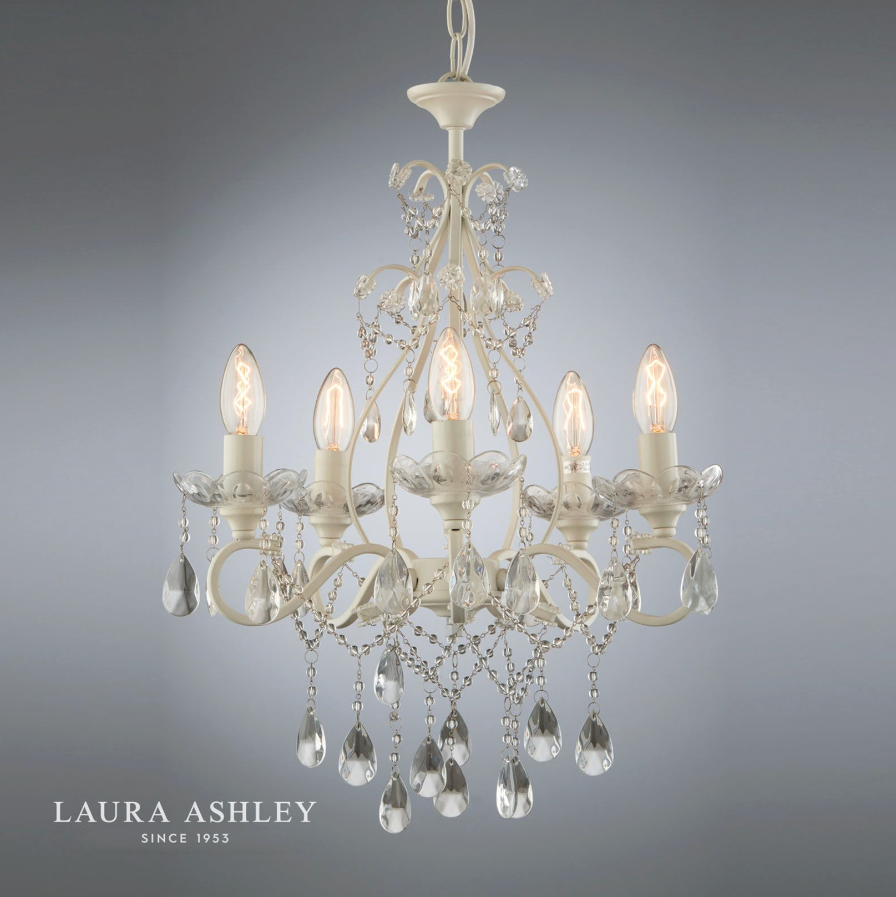 If you want to create all the glamour of a Versailles chandelier in a far more bijou space, why not opt for the Shamley ceiling light from Laura Ashley? Positively dripping with light-refracting crystal teardrops and beads, this metal pendant light has 5 lights held on curved arms. The metalwork is painted in a matt white finish, so this petite chandelier will be right at home with both contemporary and more traditionally décor.