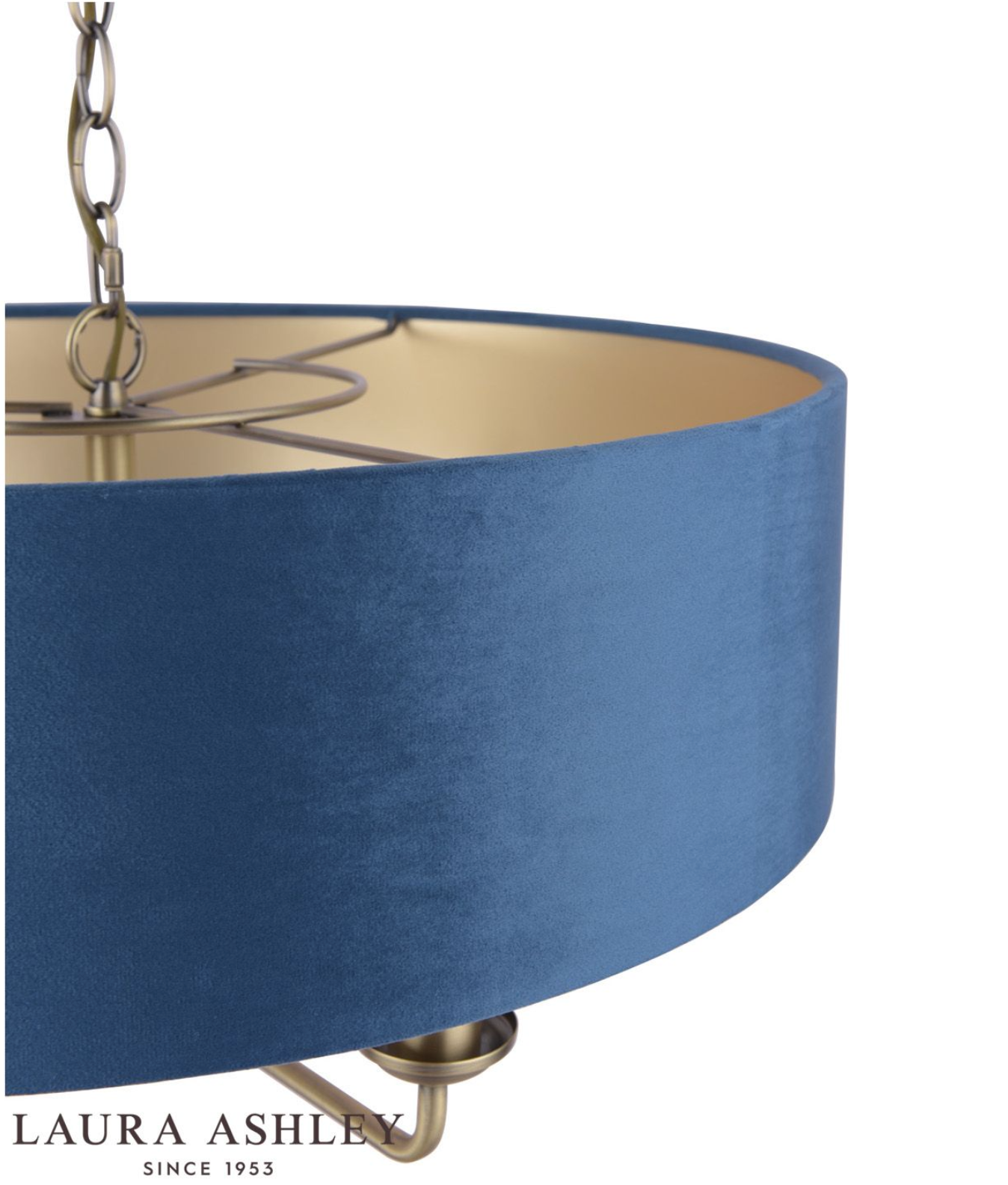 Chic and on-trend, this beautiful Laura Ashley Sorrento Ceiling Light features six lights on arms, all encased in a single contemporary drum shade. This light features a hanging chain falling from an Art Deco style ceiling rose.