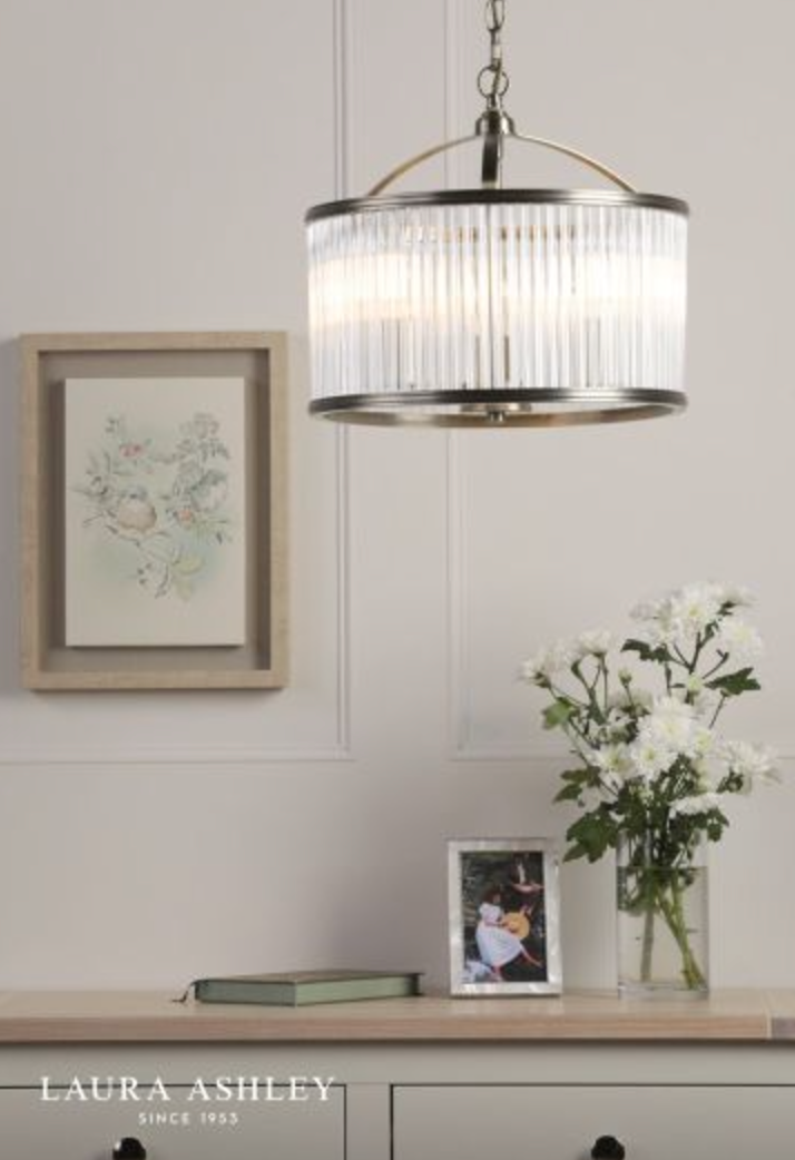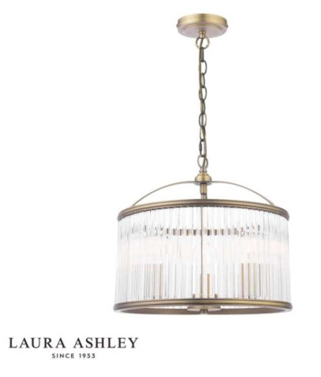 Laura Ashley - Sutton 3 Light Pendant, Matt Antique Brass and Ribbed Glass - ID 13632,