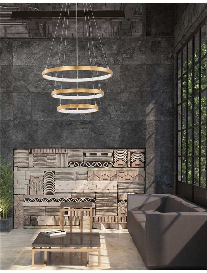 LEO Gold Leaf & Acrylic Triple Ring Adjustable Pendant - ID 10465