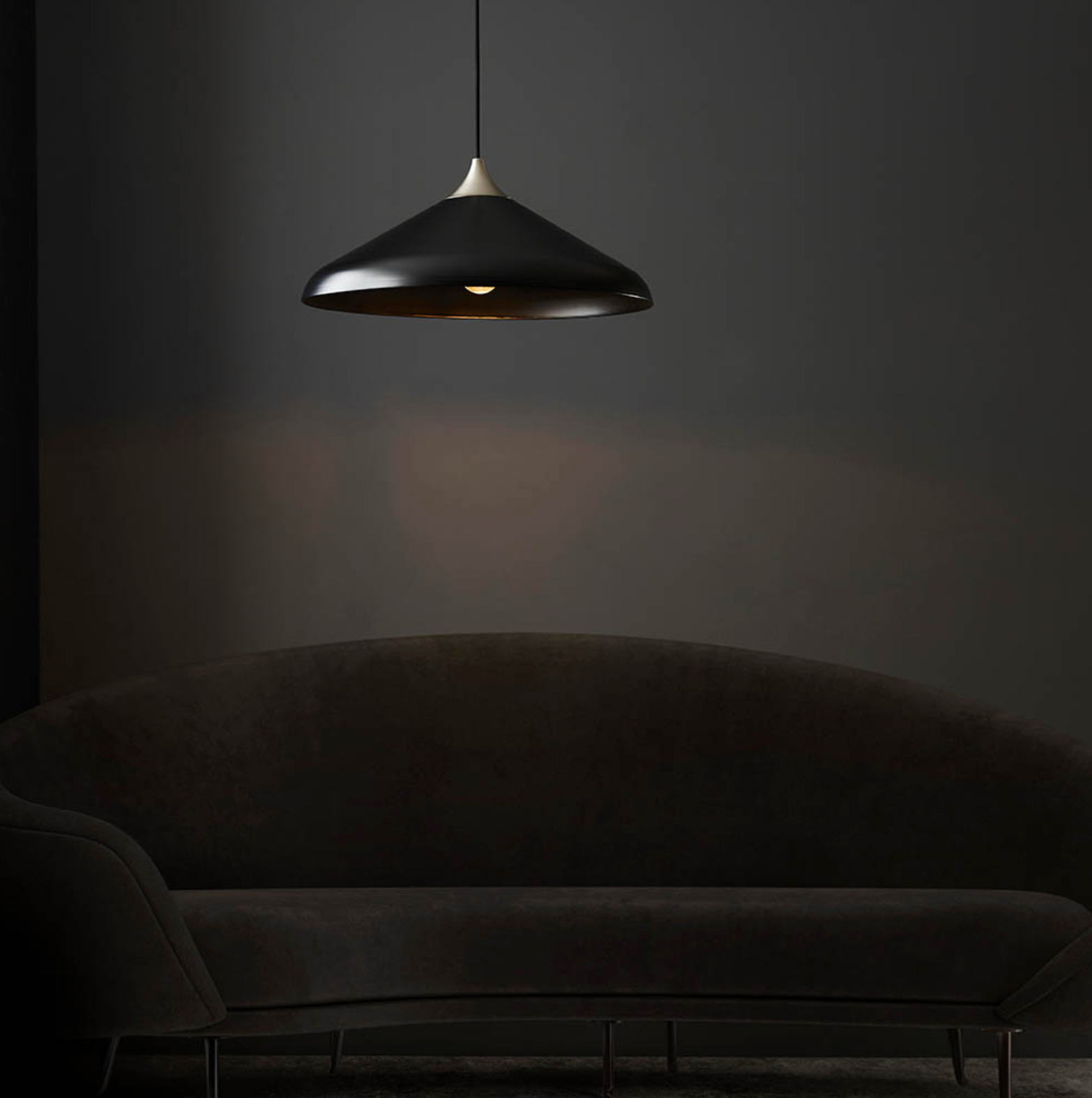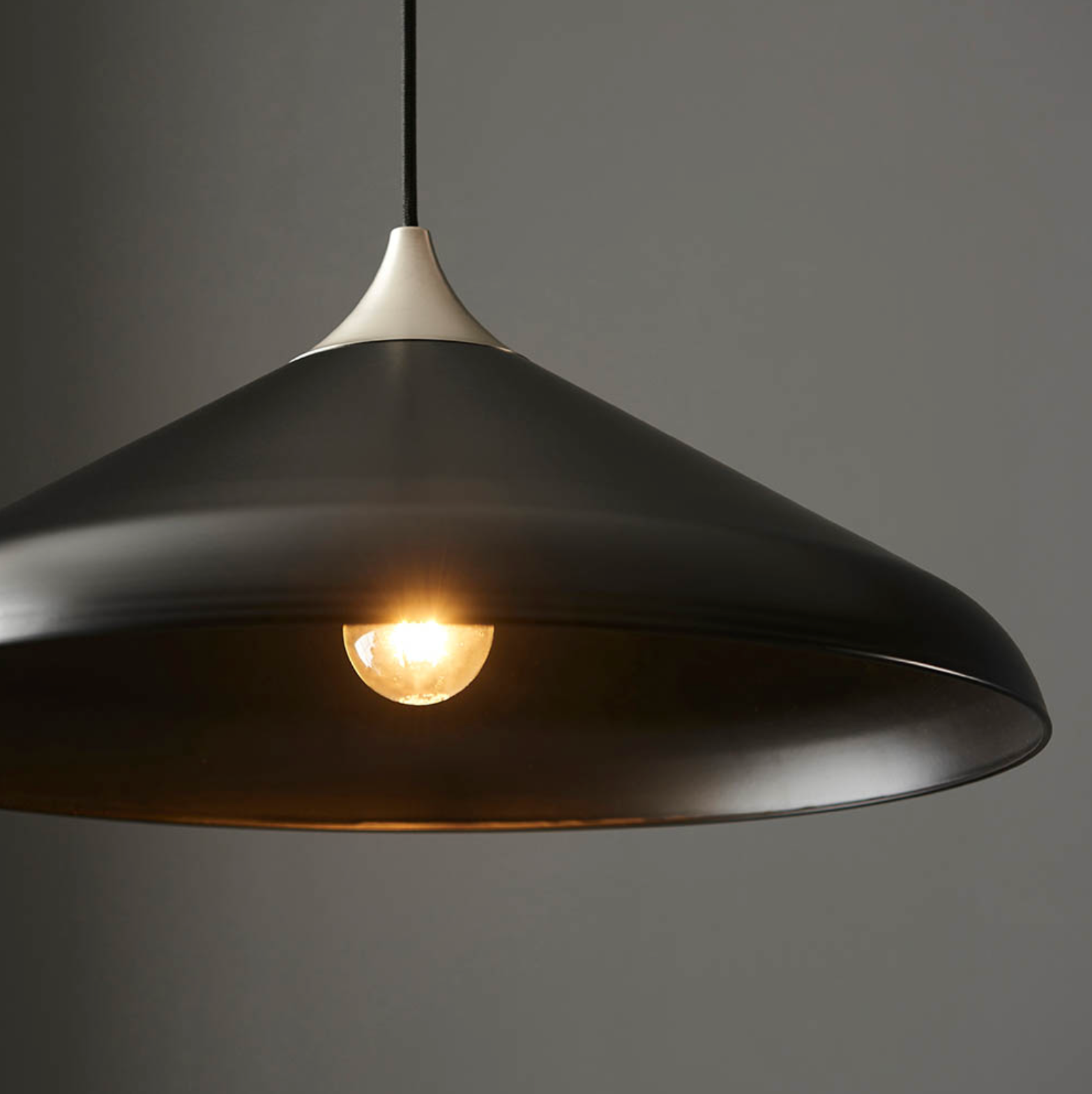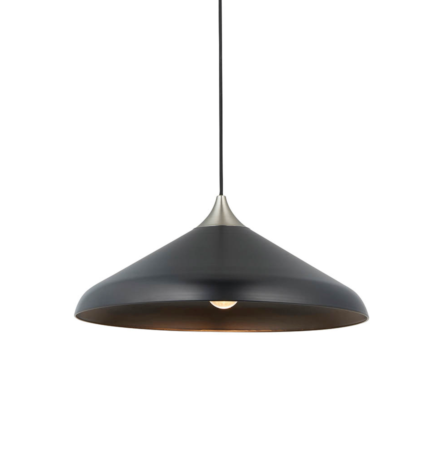 Matt Black Coned Pendant with Matt Nickel Plate - ID 12099