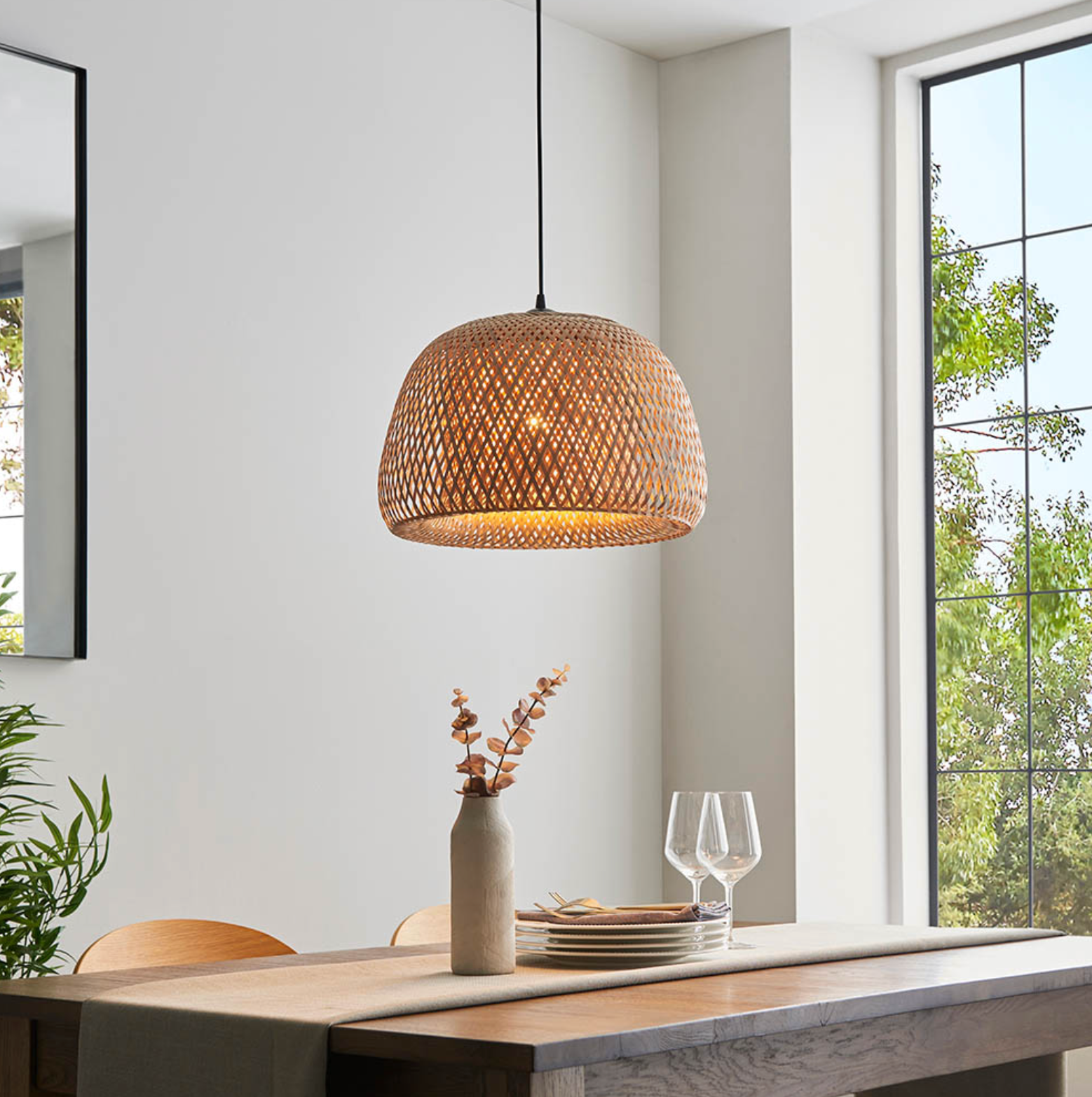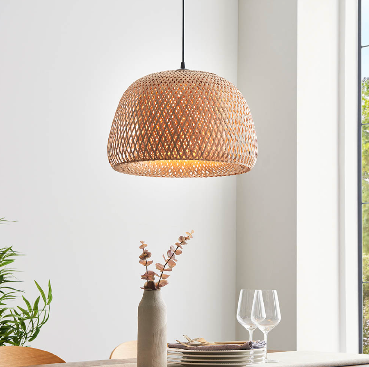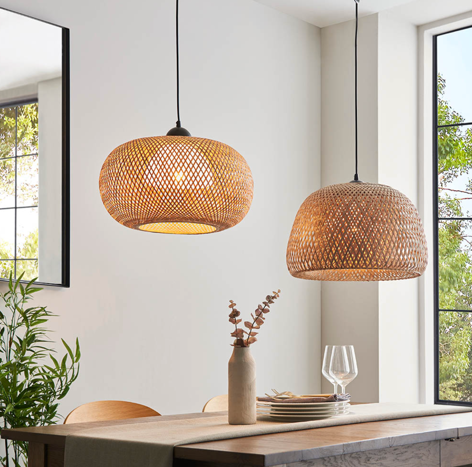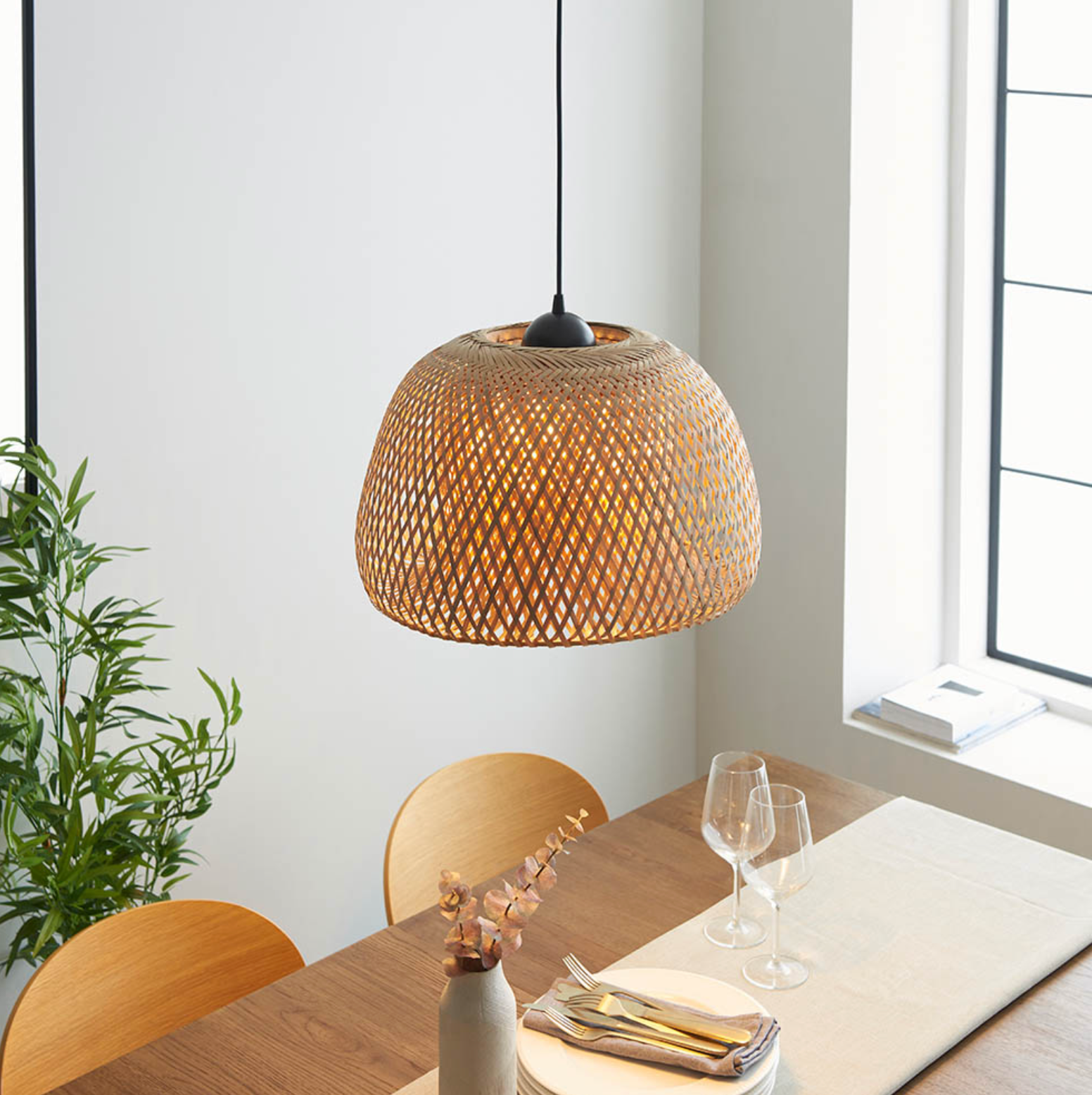 Bring the beach vibes home with this beautiful natural raffia twine pendant. Intertwined to form an elongated sphere shape this product is also dimmable. Completing that ever popular relaxed, natural design style this pendant would look just as at home in a kitchen/dining space as it would a bedroom or living room. Also available in alternative shape.
