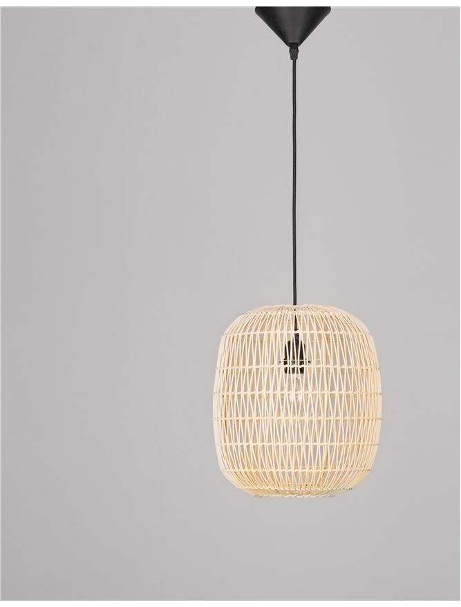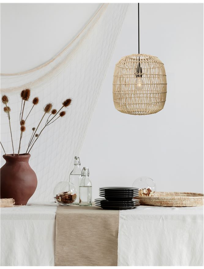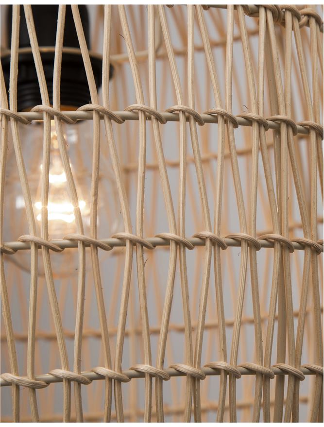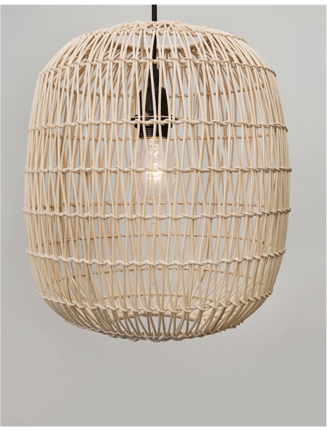 MEL Natural Ratan With Black Fabric Cable & Base Single Pendant - ID 10446