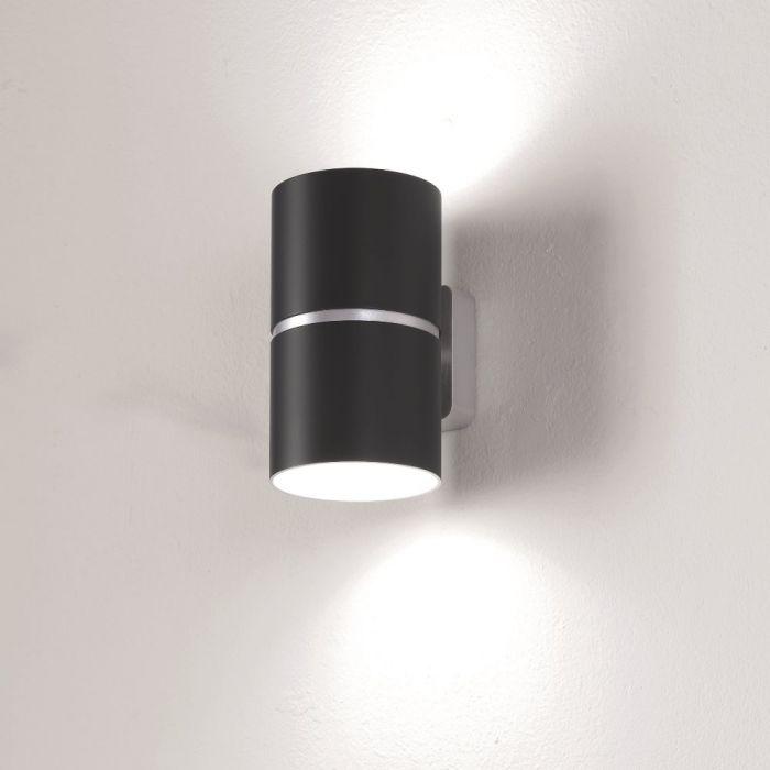 Contemporary cylindrical design wall light, the trim around the LED is curved which allows the fitting to cast a concentrated wash of light up and down the wall.