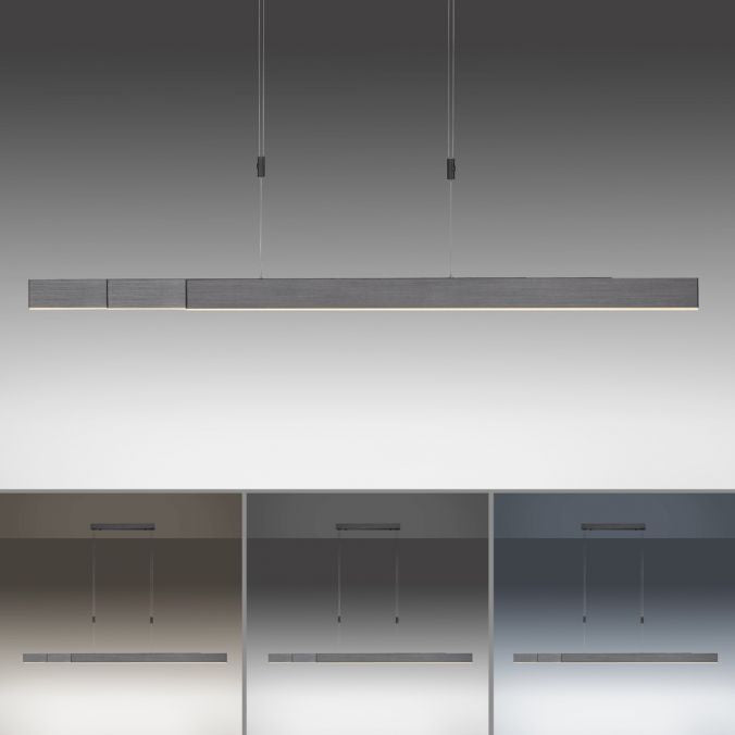 With this pendant physical adjustments such as height and length and light and visual adjustments such as brightness and colour temperature can be achieved.