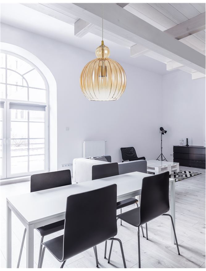 ODE Champagne Glass & Chrome Aluminium Finish Single Pendant Medium - ID 10019
