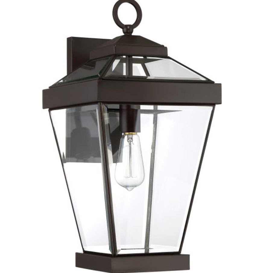 The Vine outdoor collection achieves sophisticated style in a minimal way. The rich Western Bronze on the base showcases the clear bevelled glass panels on the sides and top of the fixture. Bulbs sold separately.