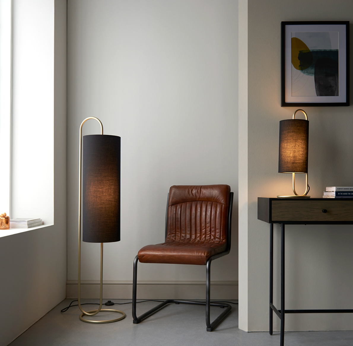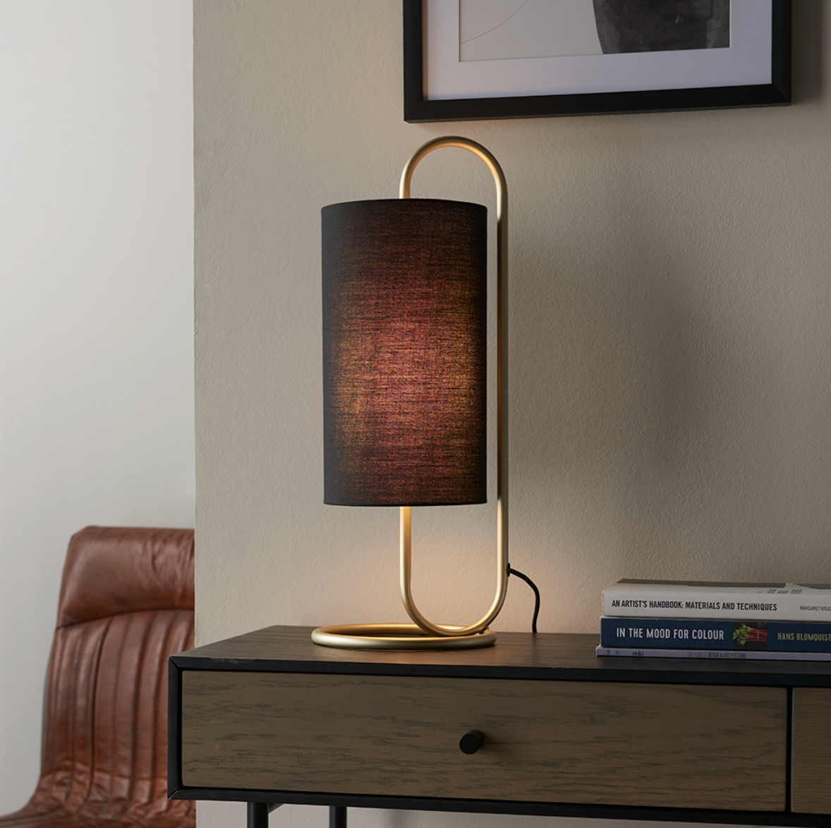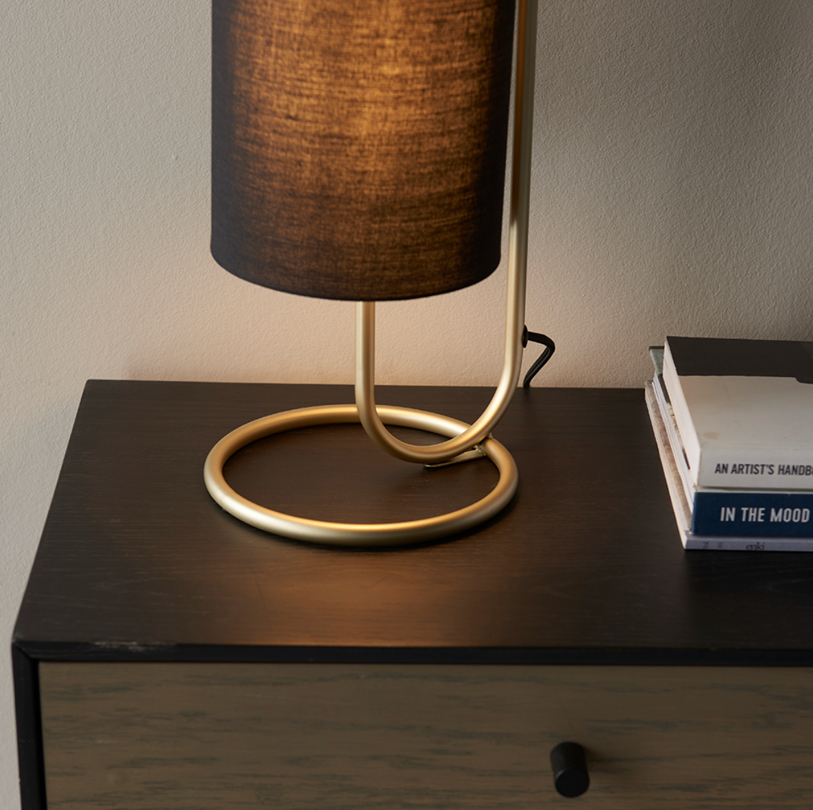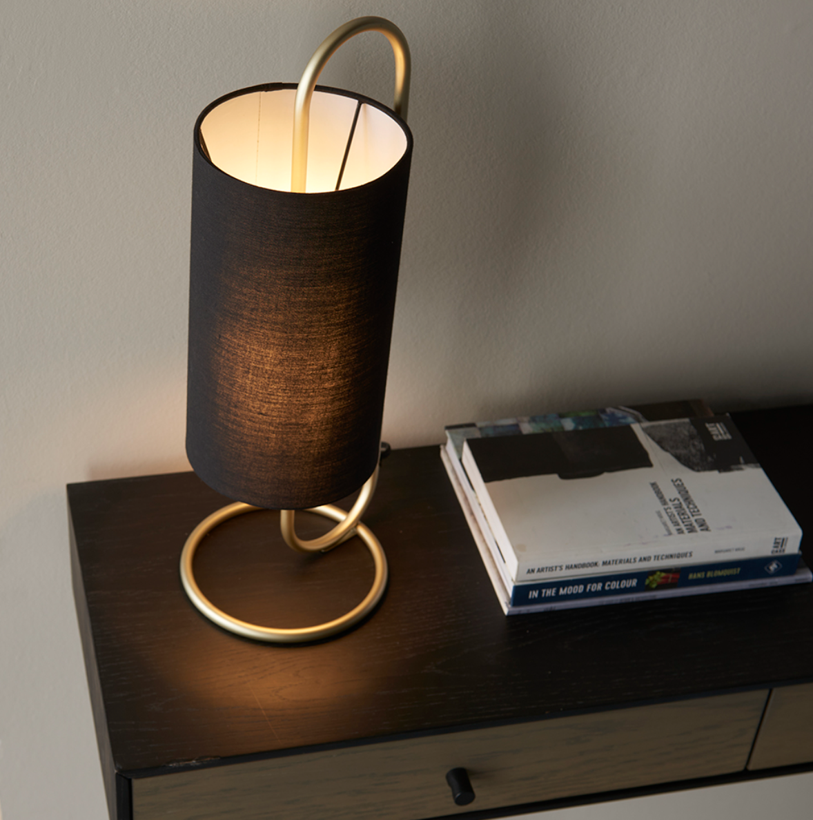 Black fabric cylindrical shade,