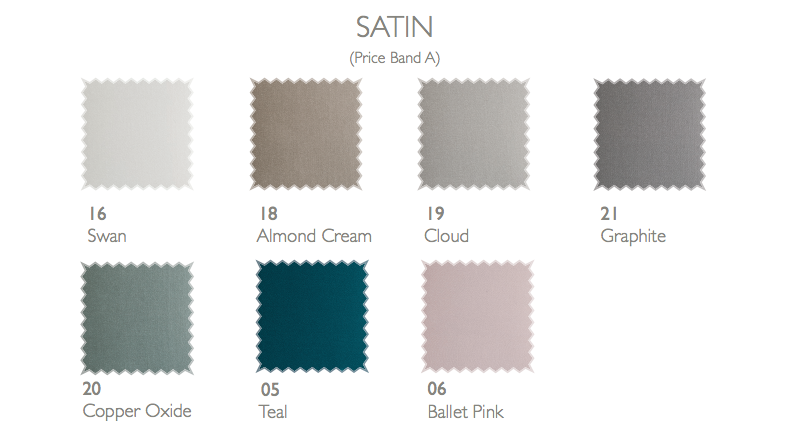 Available in a range of a range of 23 different finishes, including 100% silk dupions, silk linens and smooth satins - shown here in ‘Taupe, Silk Dupion'